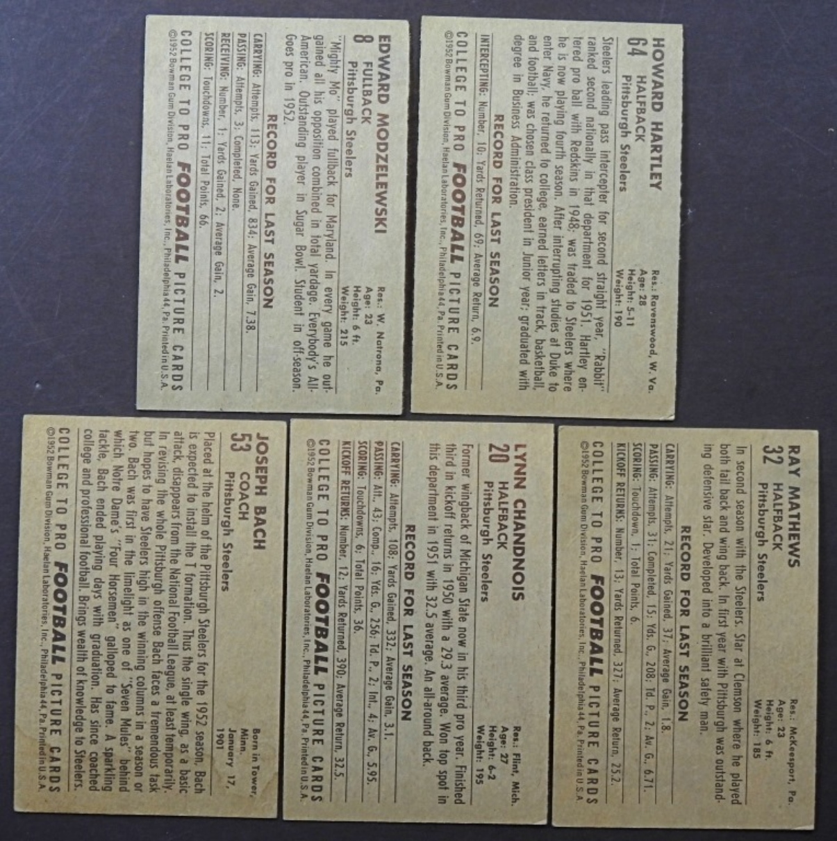 #8 MODZELEWSKI, #20 CHANDNOIS, #32 MATHEWS, #53 BACH, #64 HARTLEY – NICE EX/VGEX