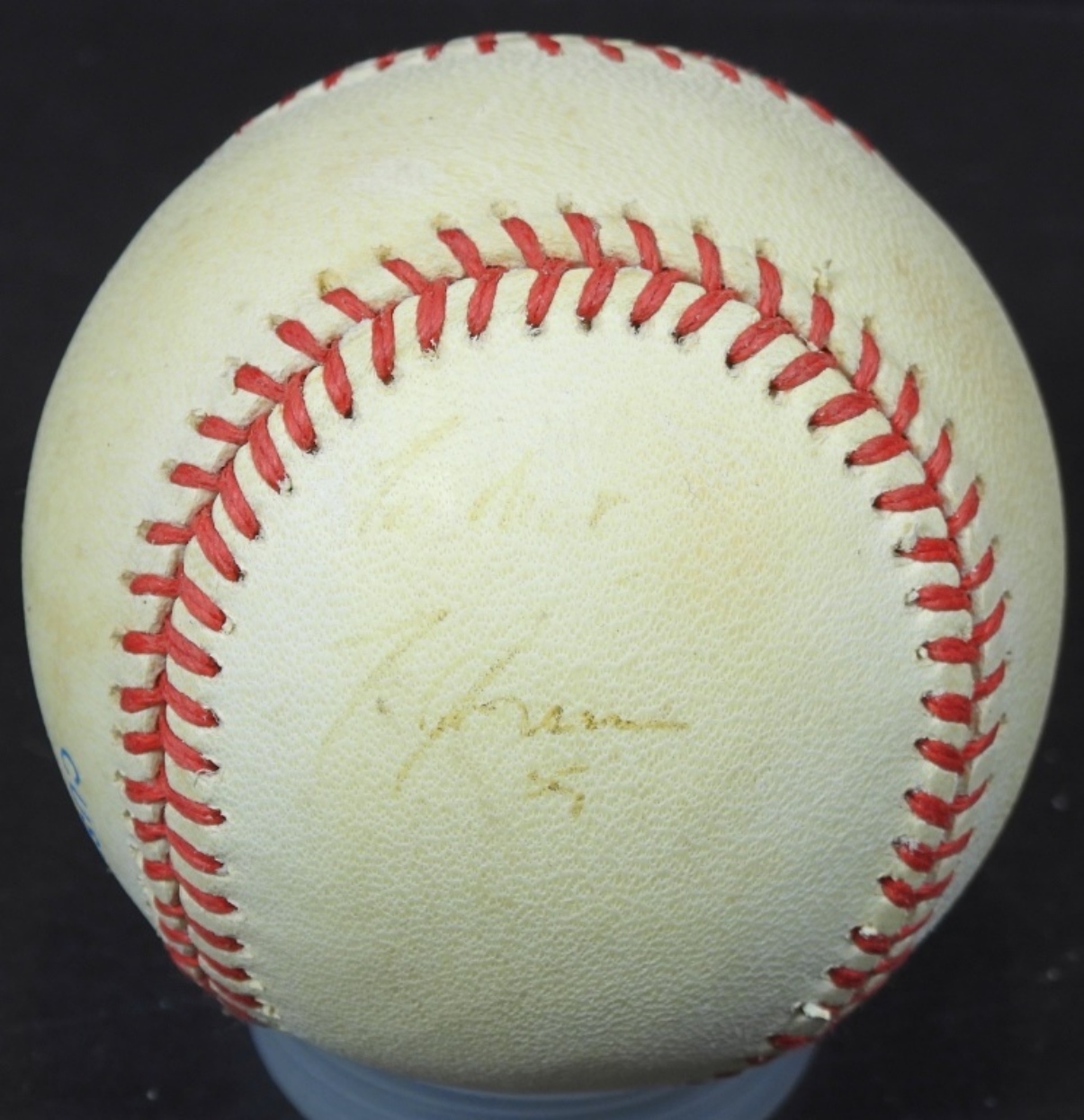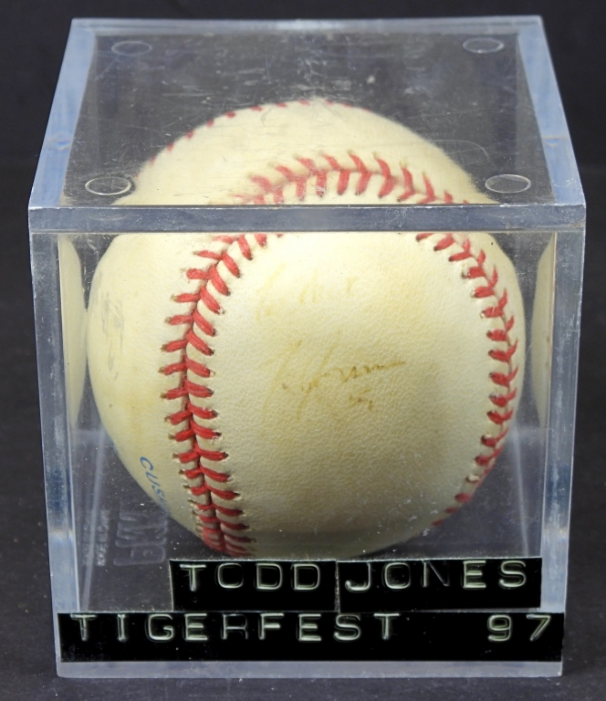 TODD JONES AUTOGRAPHED BASEBALL, UNVERIFIED, IN PROTECTIVE CASING NO COA