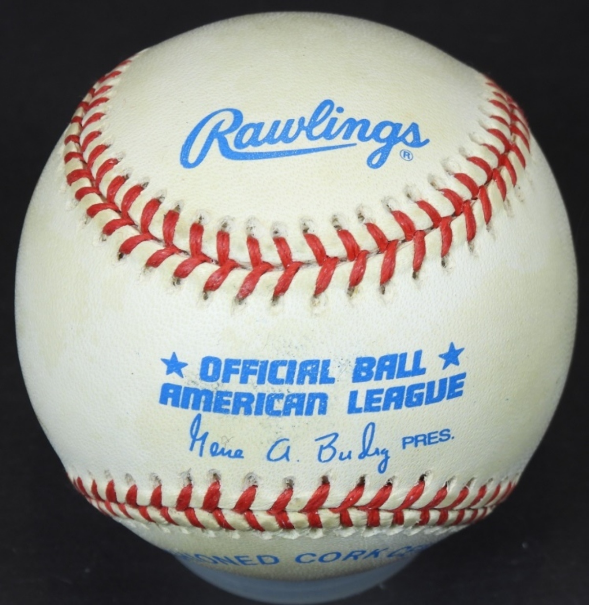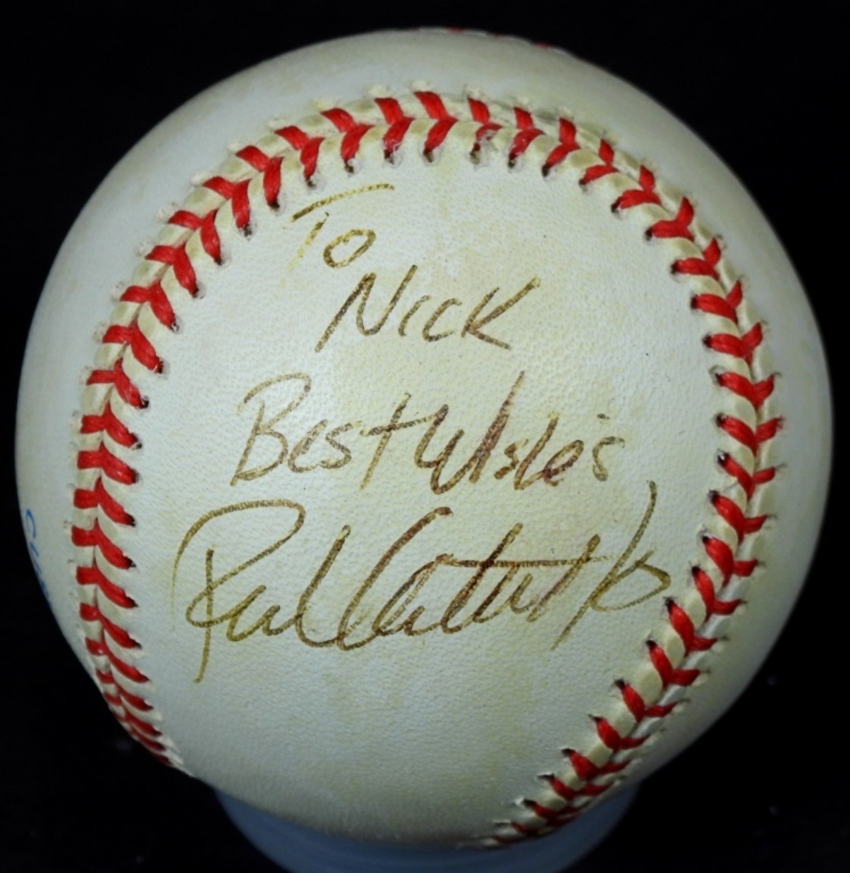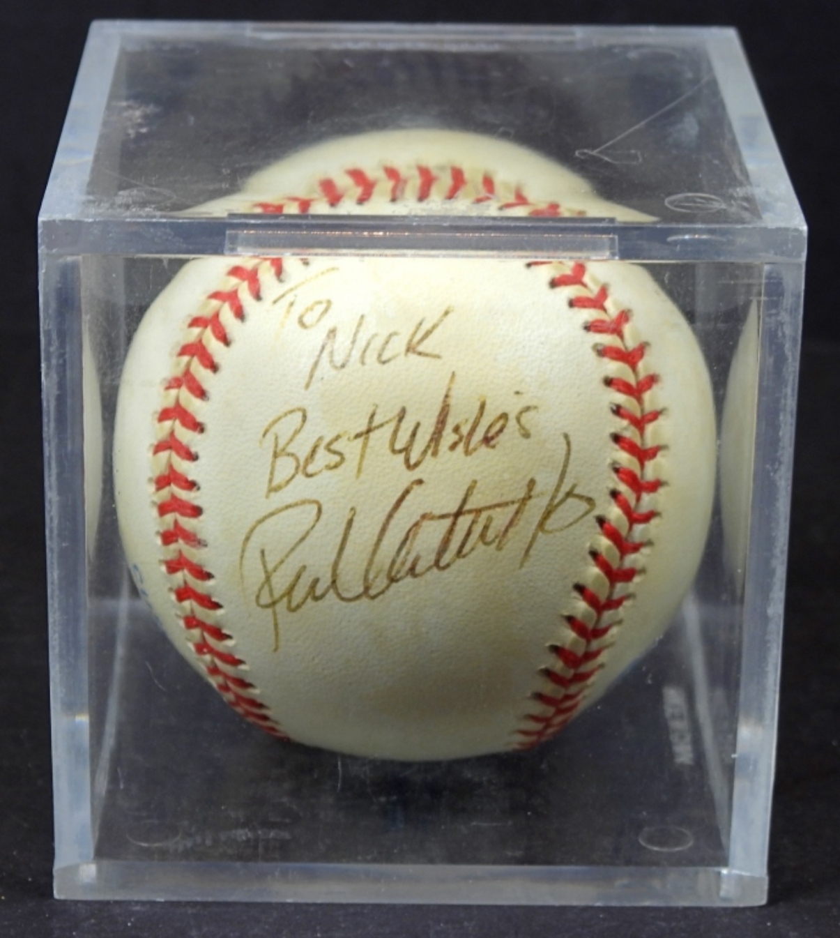 “TO NICK” FRANK CATALANOTTO AUTOGRAPHED BASEBALL, UNVERIFIED, IN PROTECTIVE CASING NO COA