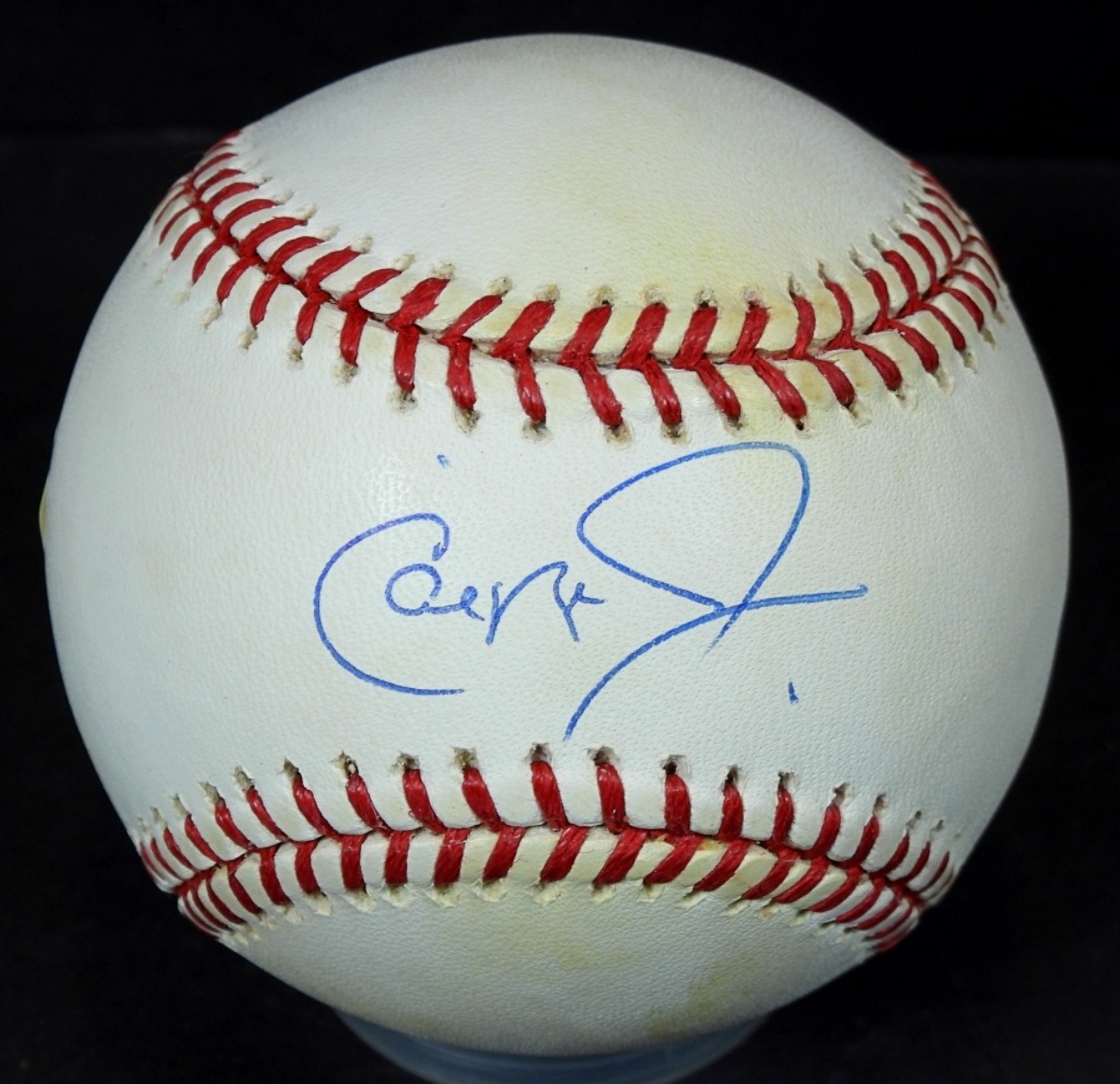 SIGNED CAL RIPKEN JR. BASEBALL, UNVERIFIED, IN PROTECTIVE CASING, BOTTOM TO CASING IS MISSING NO COA