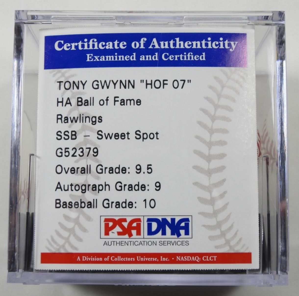 TONY GWYNN HOF 07 AUTOGRAPHED BASEBALL SIGNATURE BLOCKED BY COA