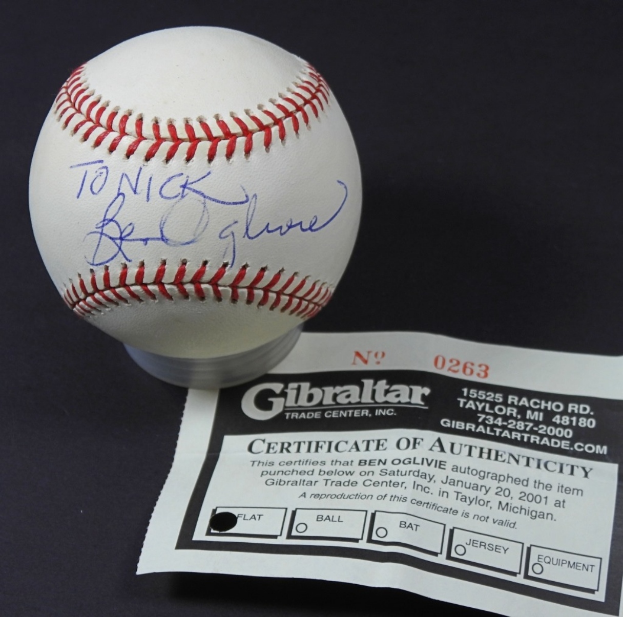 BREWERS BEN OGLIVIE SIGNED BASEBALL,IN PROTECTIVE CASING WITH COA by GILBRALTOR / UNVERIFIED