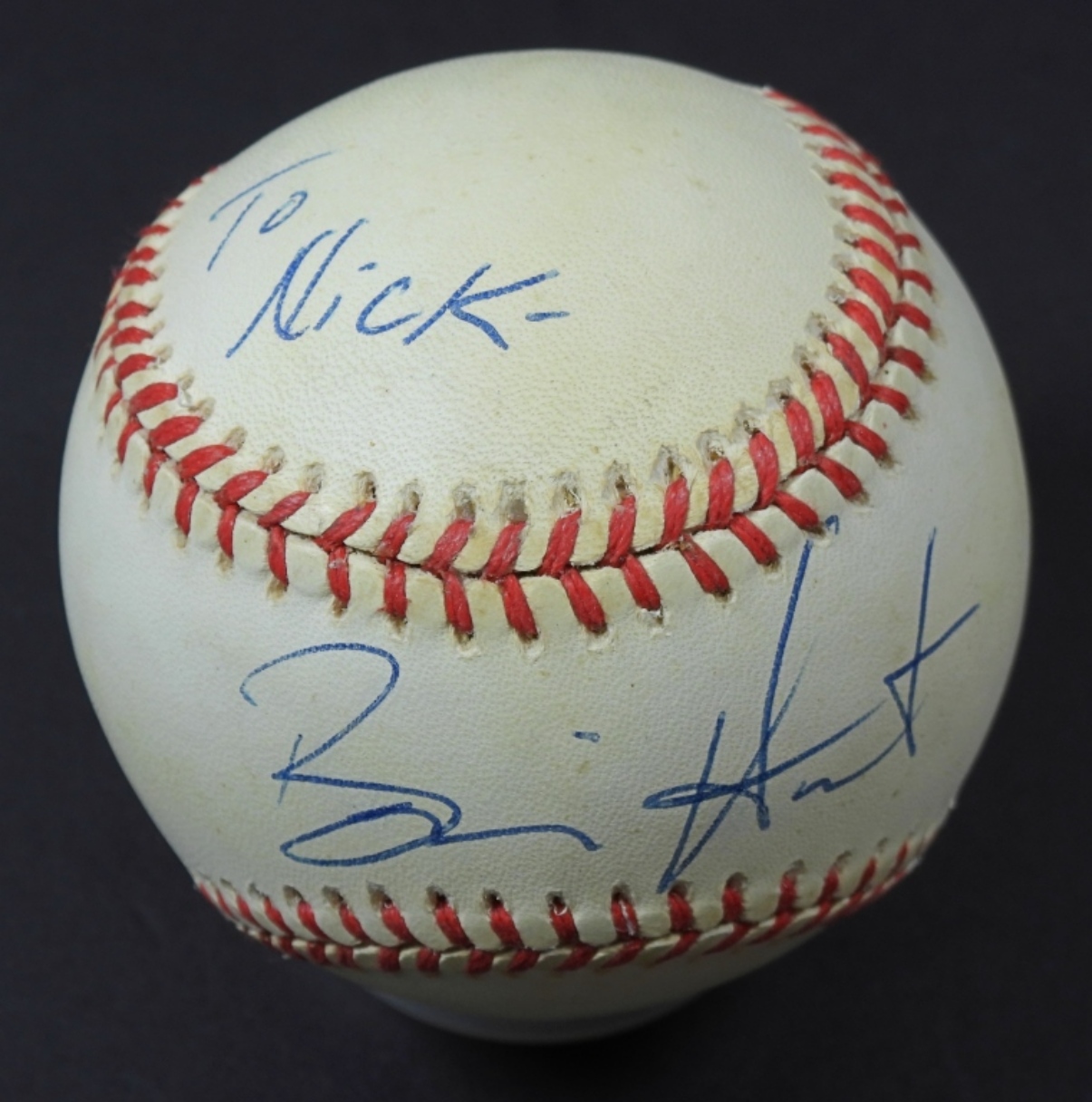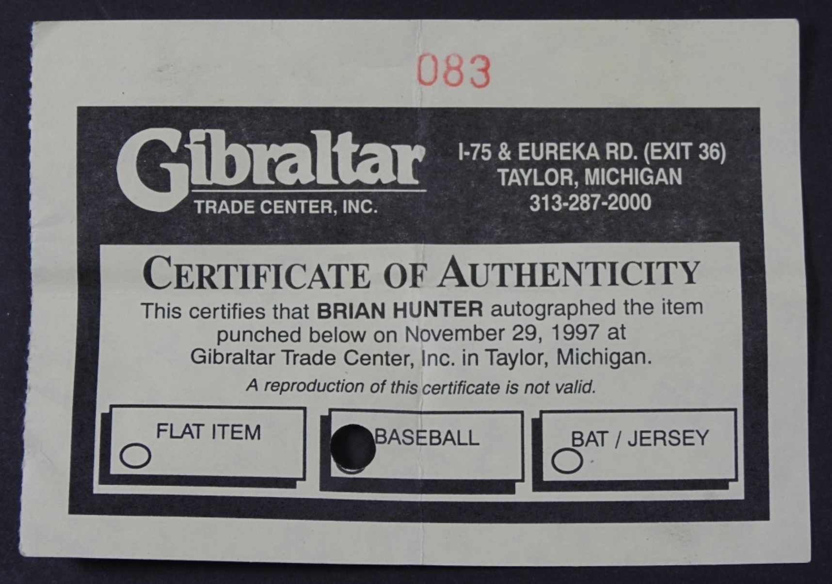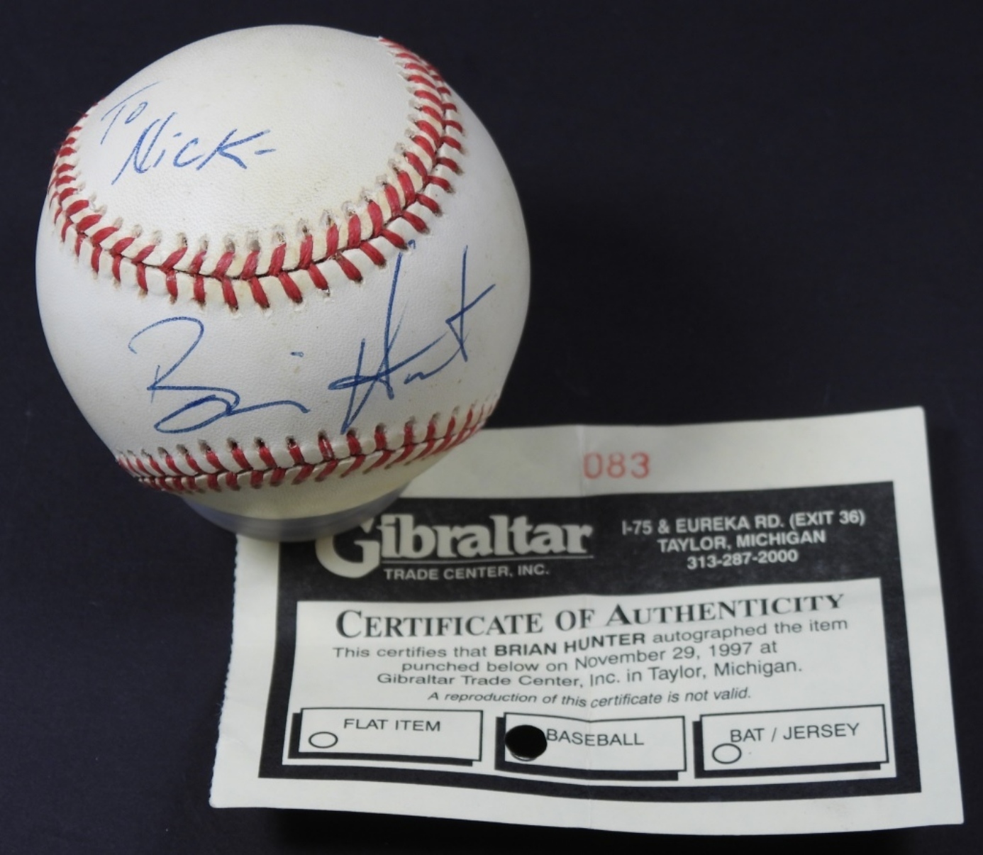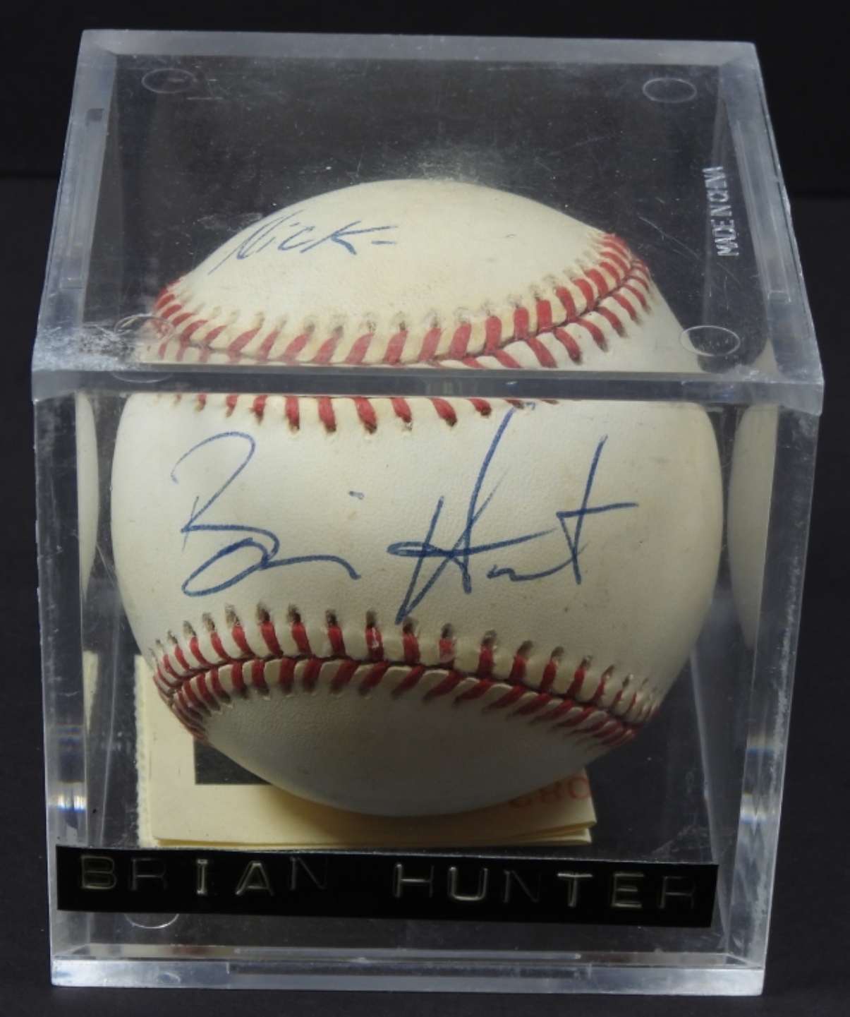 BRIAN HUNTER SIGNED BASEBALL WITH PROTECTIVE CASIN AND COA BY GILBRALTOR / UNVERFIED