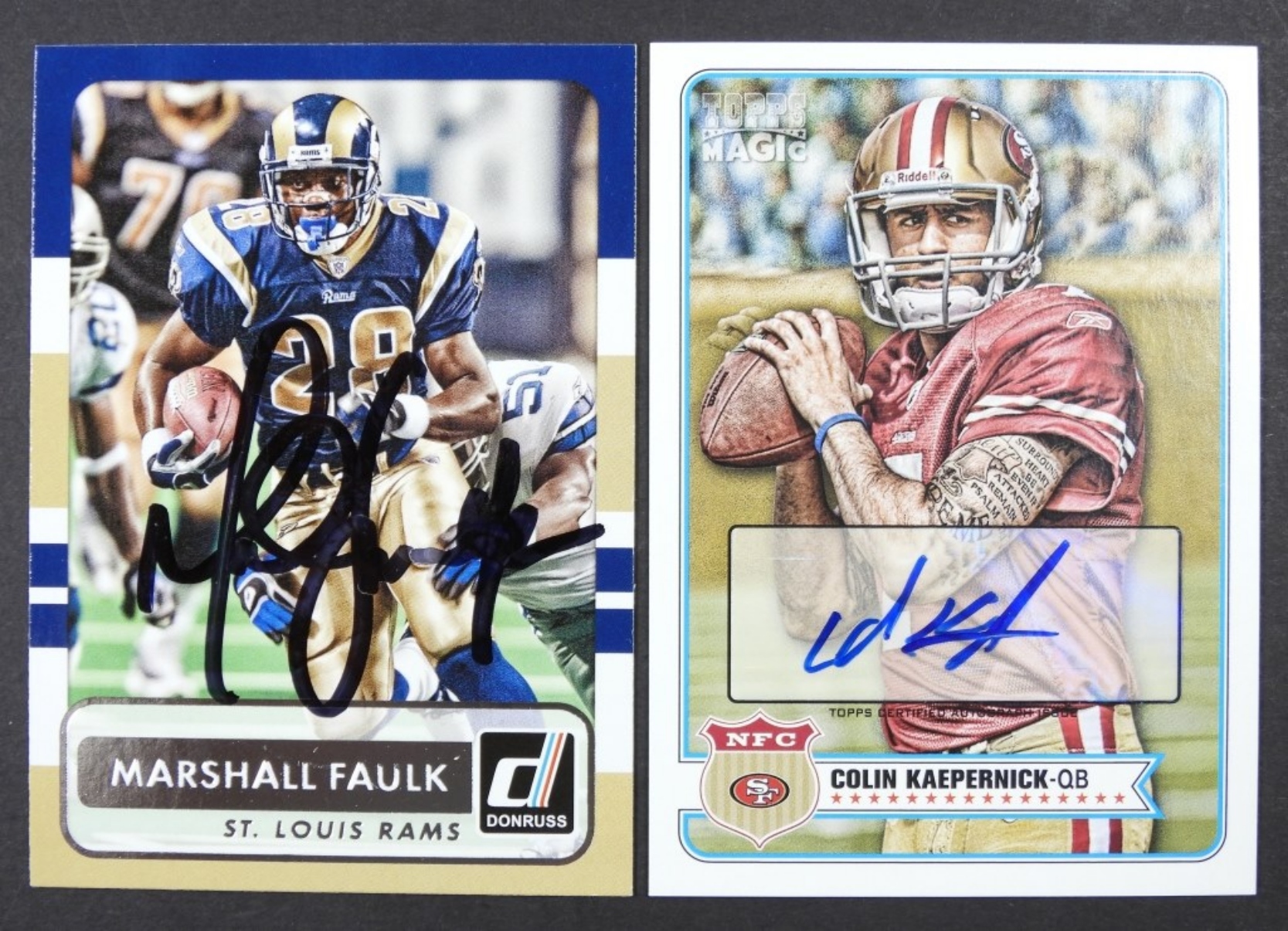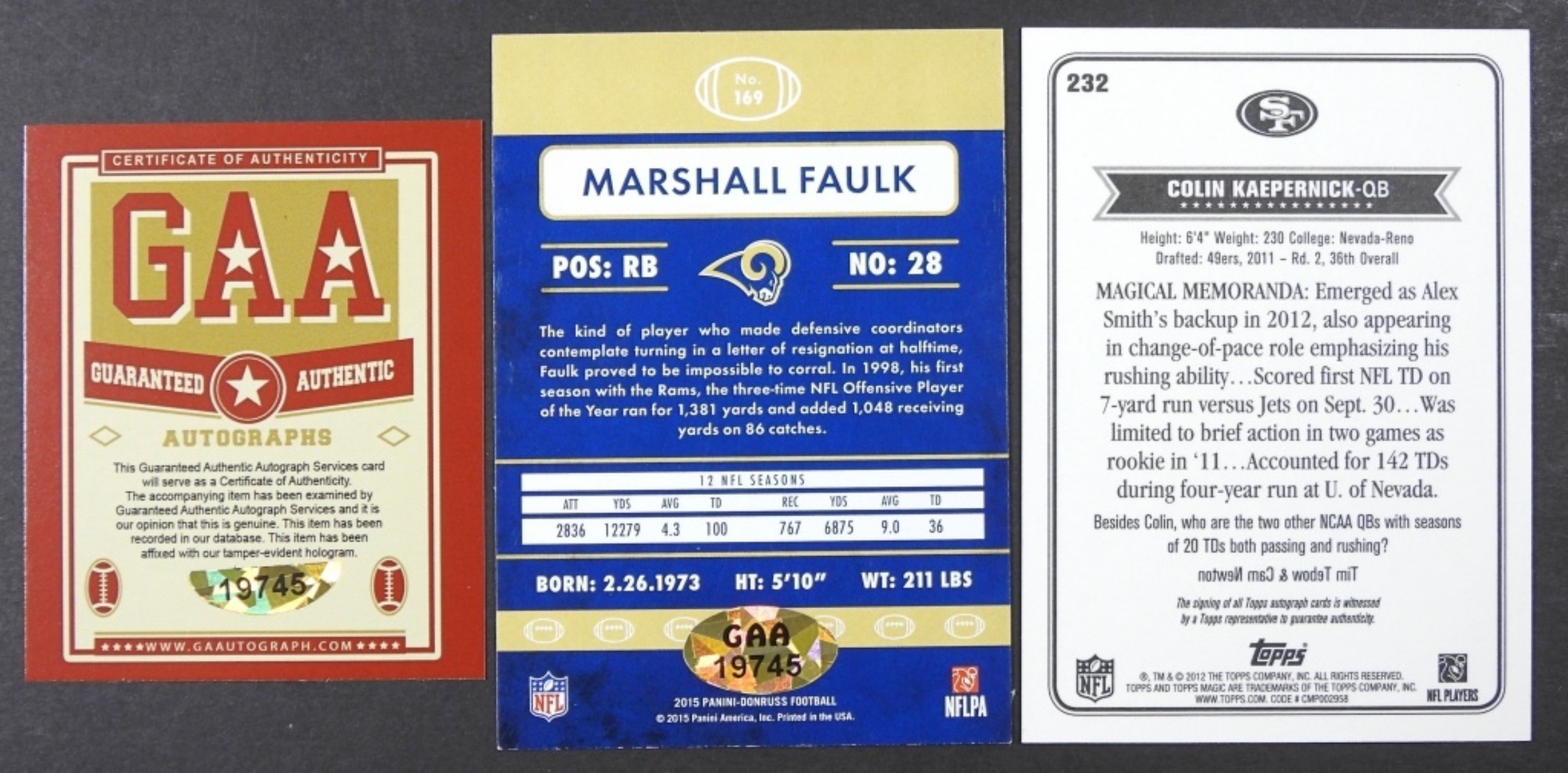 KAEPERNICK QB – MARSHALL FAULK COA by GAA / UNVERIFIED & COLIN KAEPERNICK SIGNATURE SERIES CARD