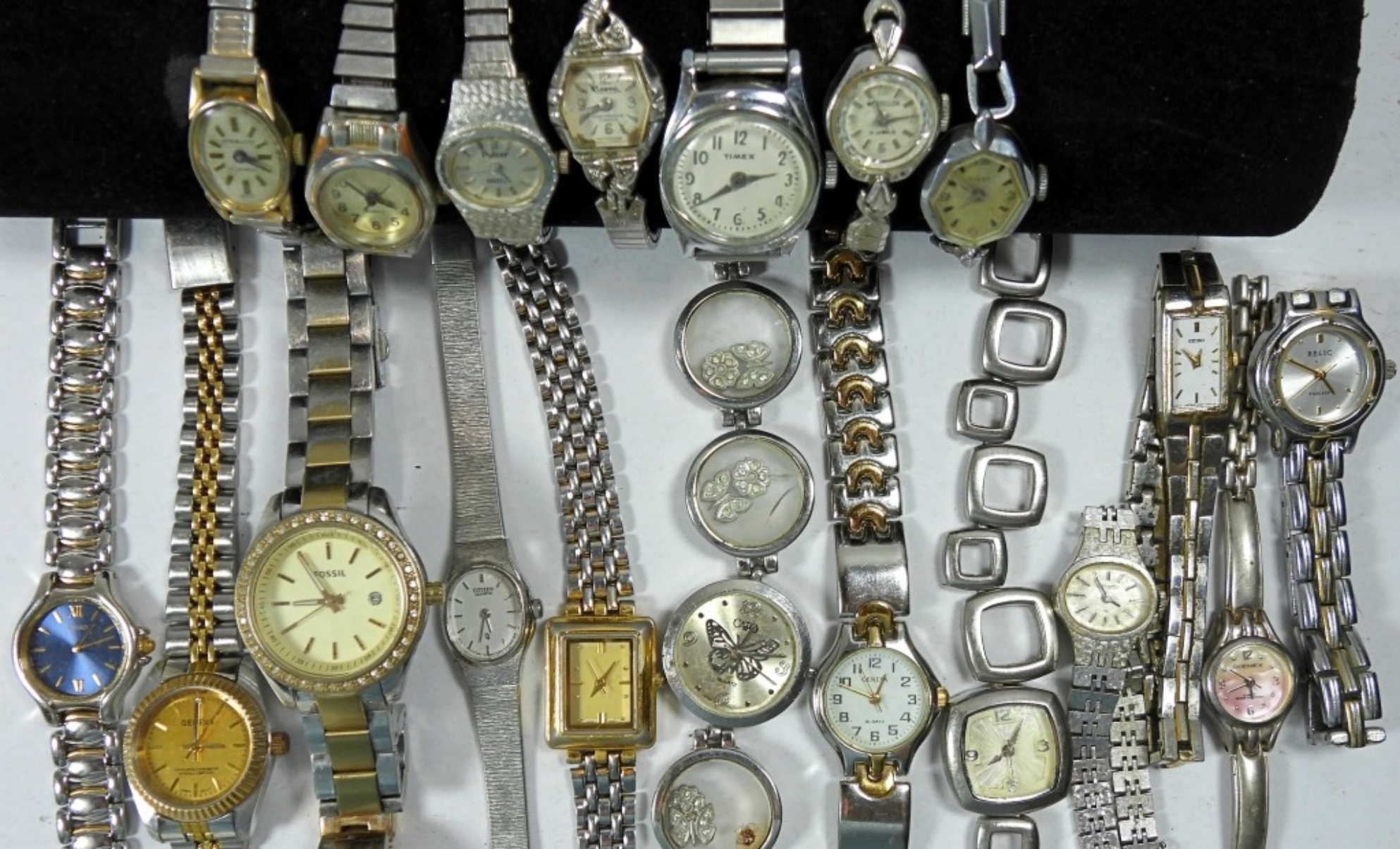 20 various fashion watches, not tested as to working or not – most will need battery replacements – some for parts or repairs – some may work
