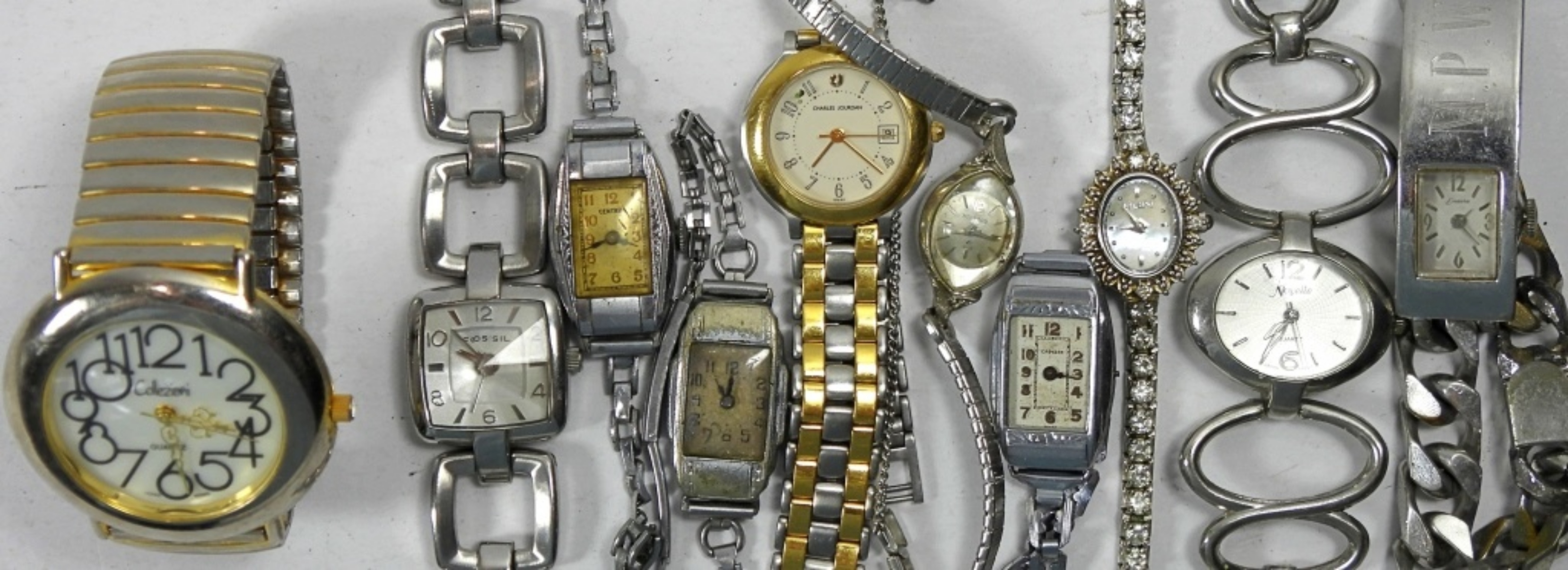 10 various ladies watches from different brands, not tested as to working or not – most will need battery replacements – some for parts or repairs – some may work