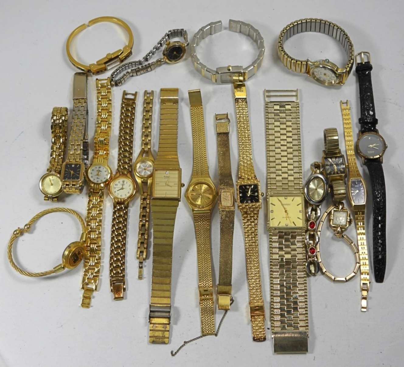 20 various fashion watches, not tested as to working or not – most will need battery replacements – some for parts or repairs – some may work