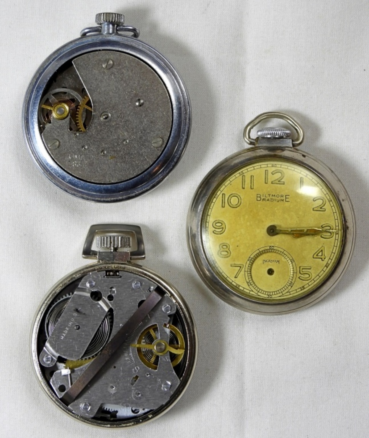 3 open face pocket watches, untested to see if they work