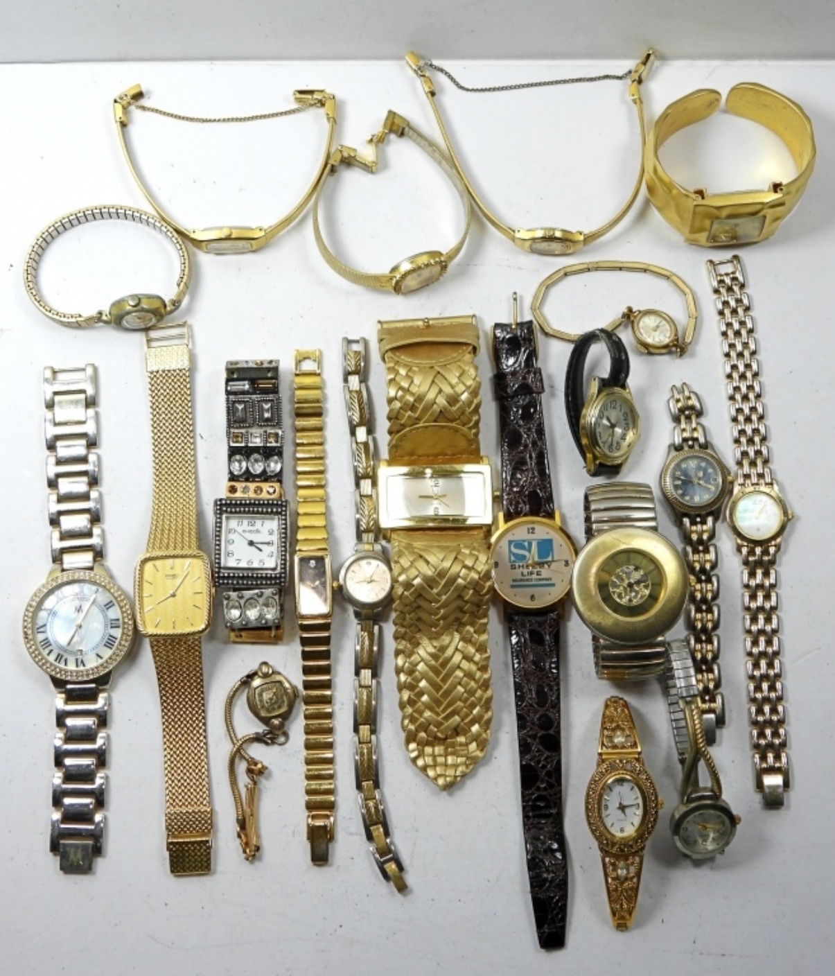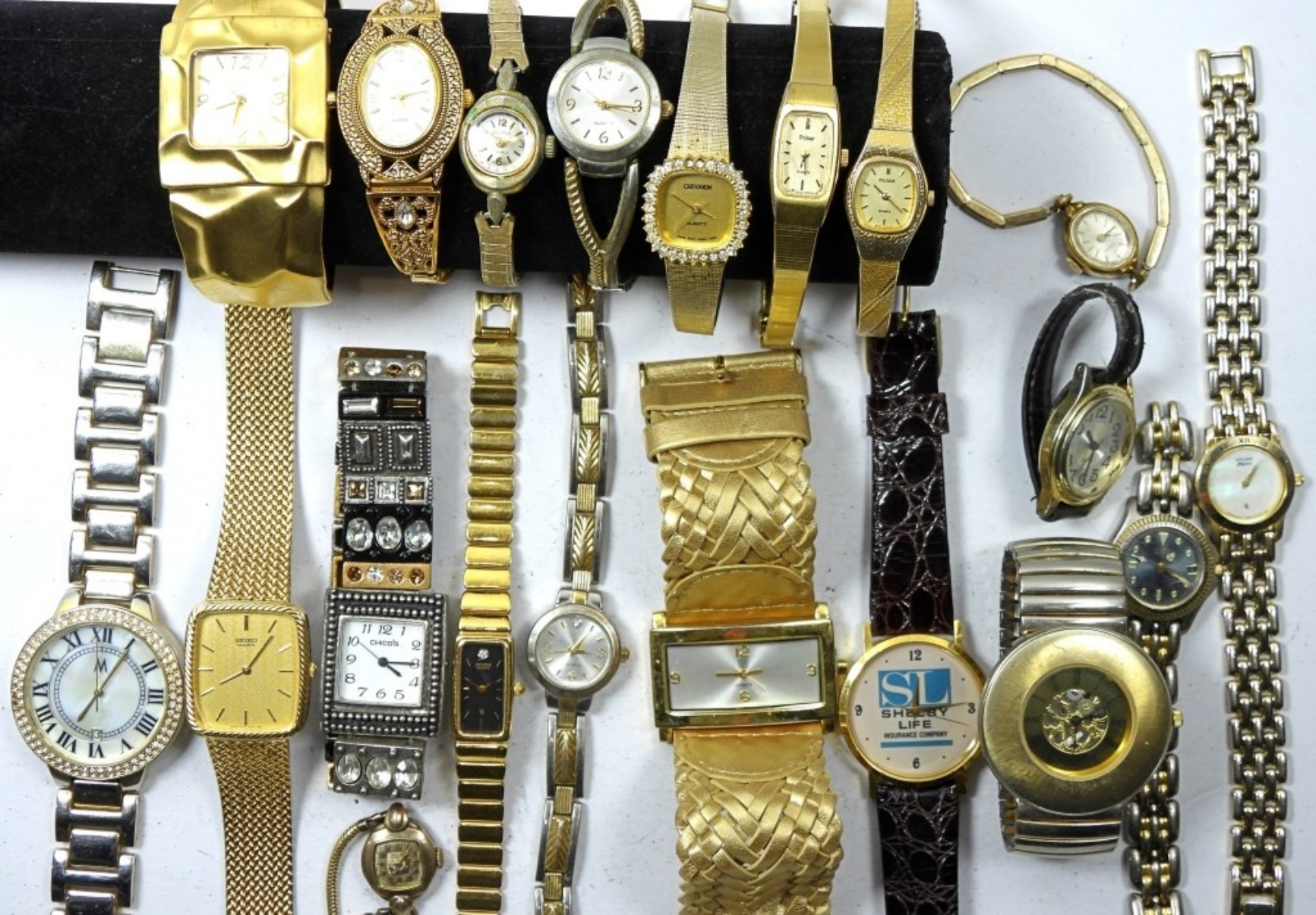 20 ladies watches, not tested as to working or not – most will need battery replacements – some for parts or repairs, some may work