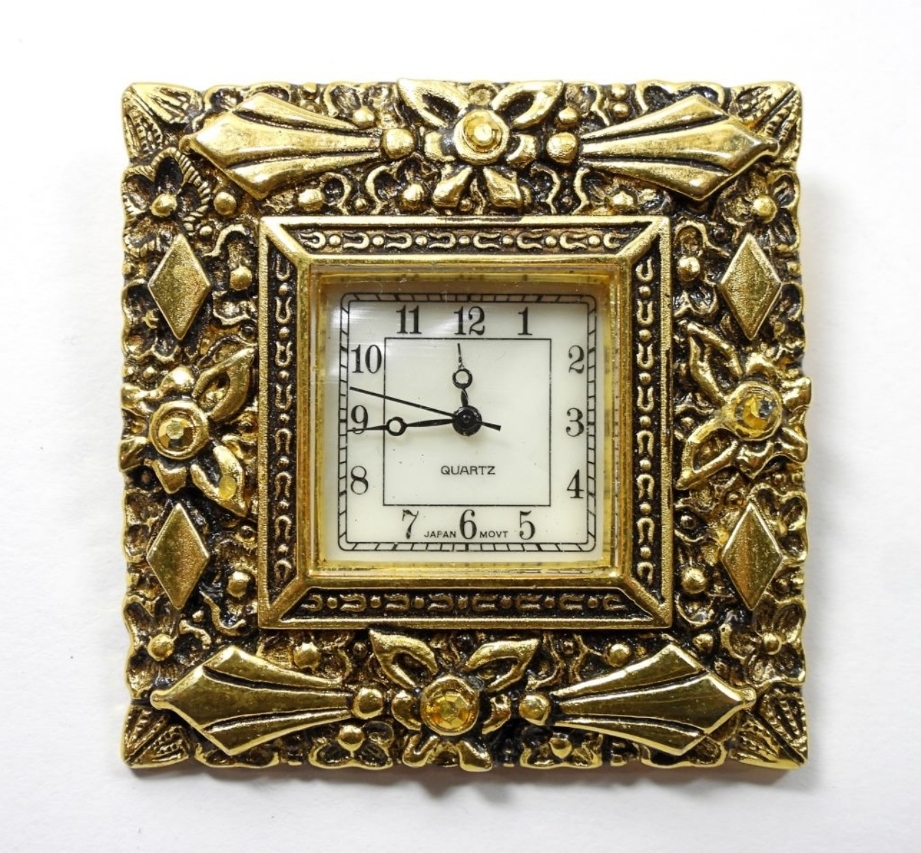 Gold tone ornate watch brooch, untested as to working or not, may need a new battery