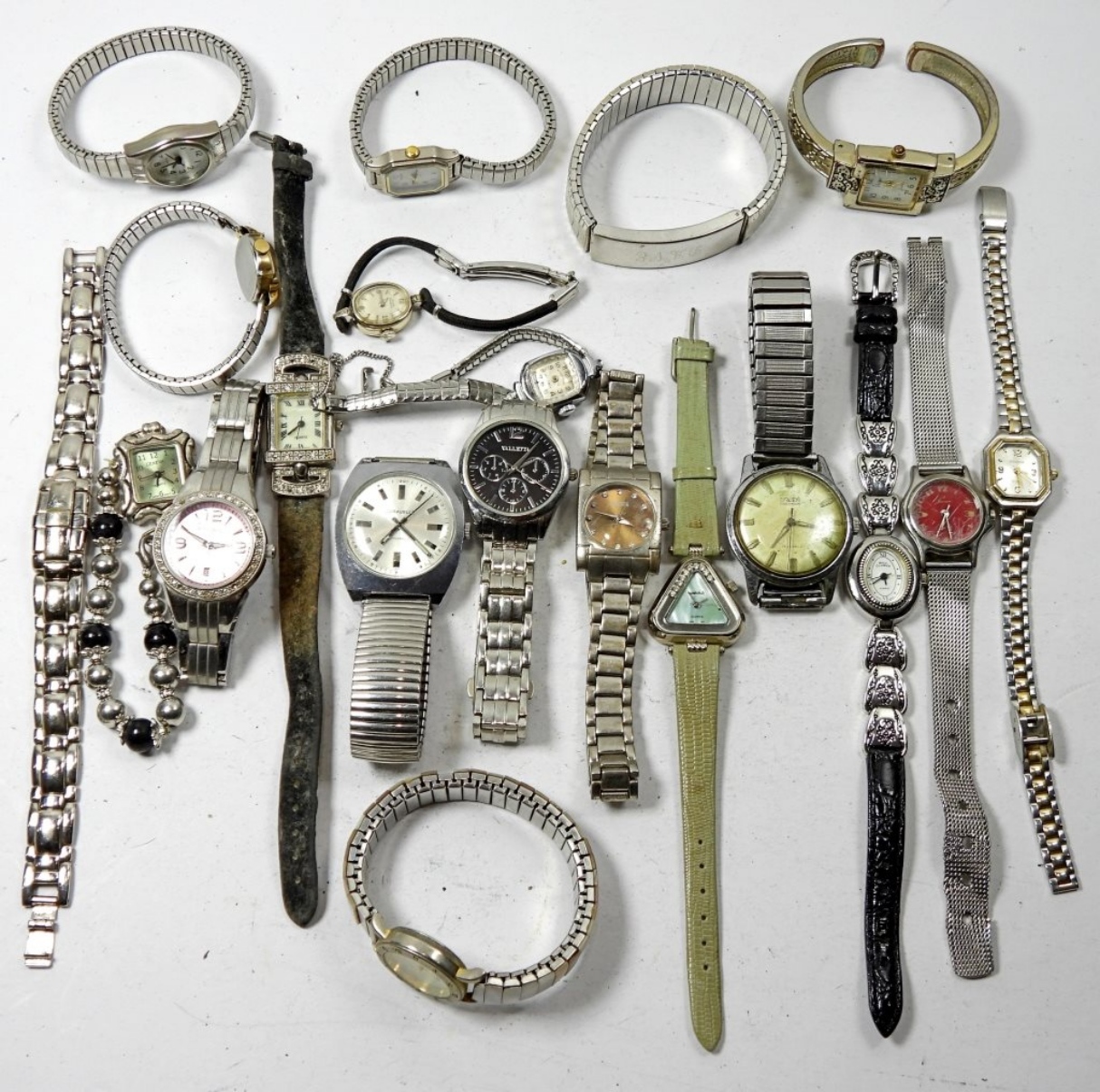 20 ladies watches, not tested as to working or not – most will need battery replacements – some for parts or repairs, some may work