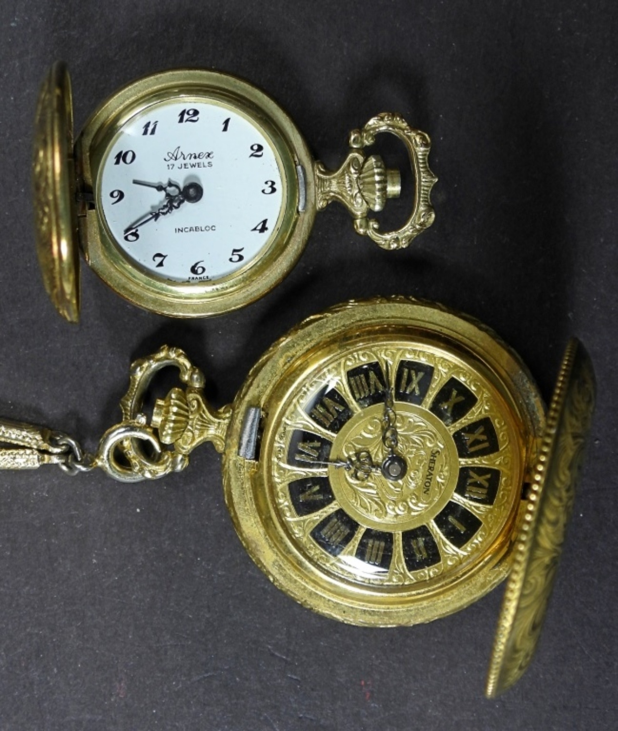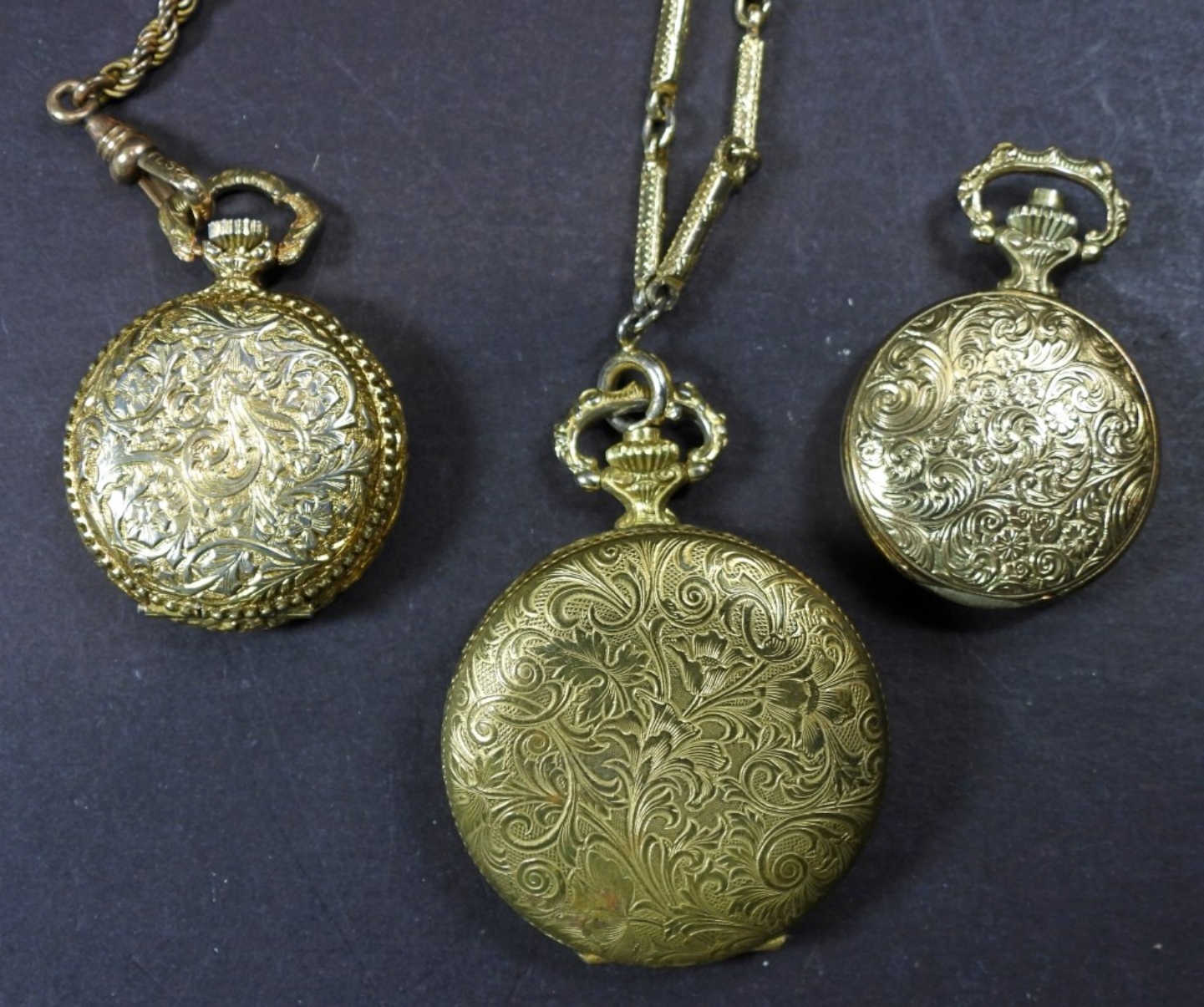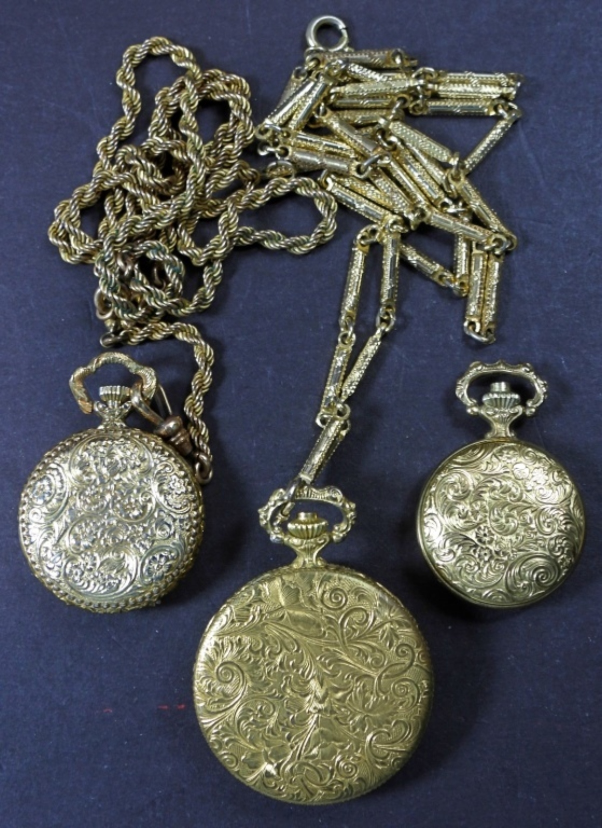 3 QUARTZ VINTAGE POCKET WATCHES, UNTESTED, SOME MAY BE BROKEN OR NEED REPAIRED, CAN BE USED FOR PARTS/REPAIR,