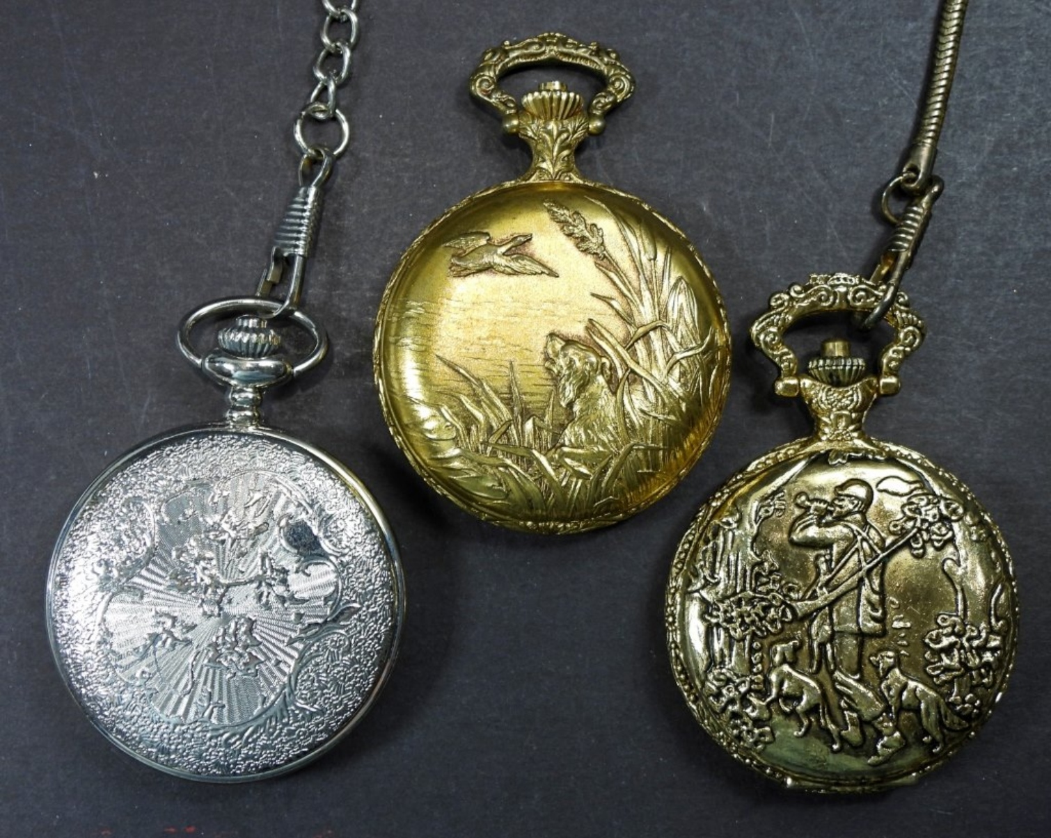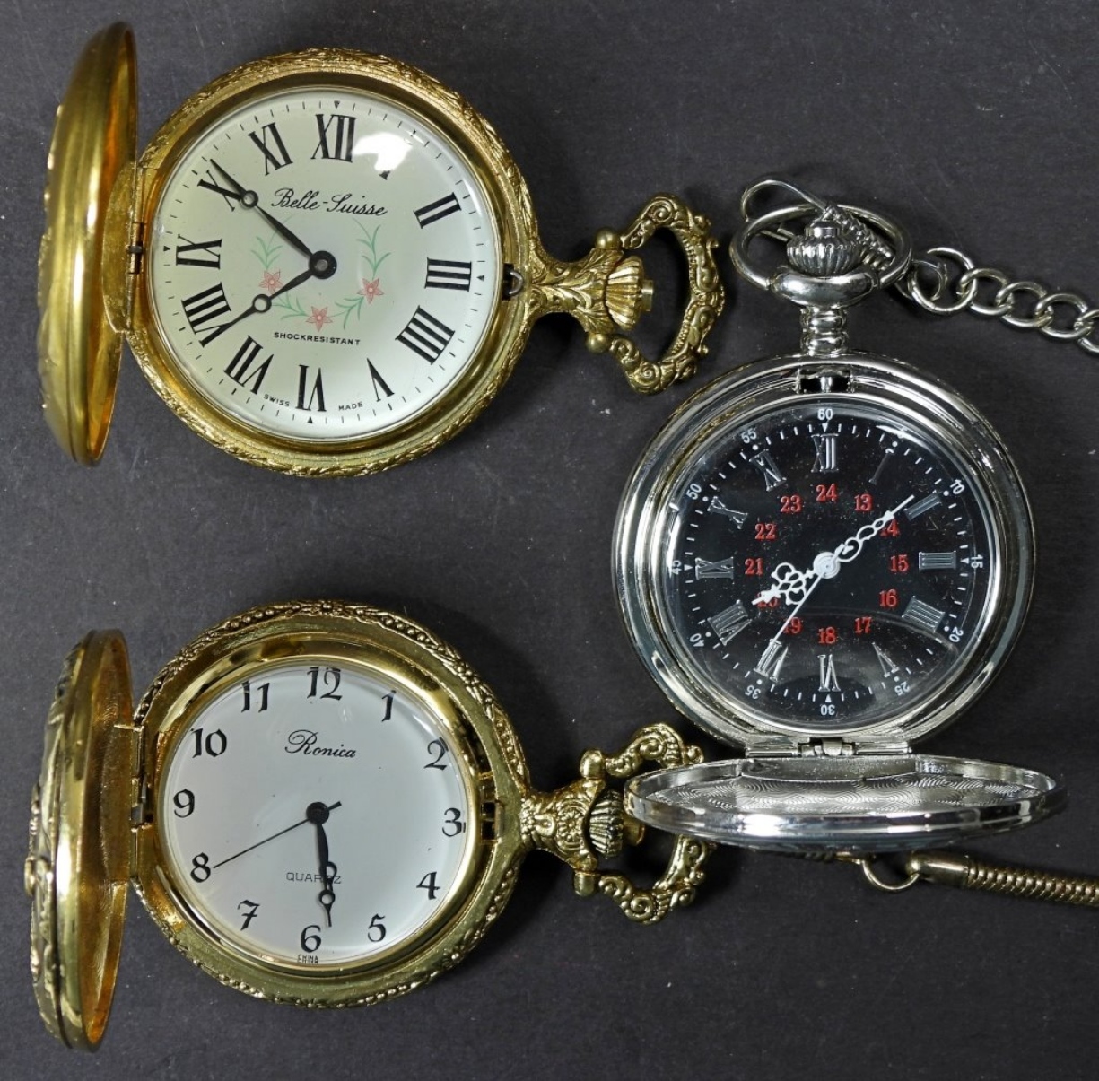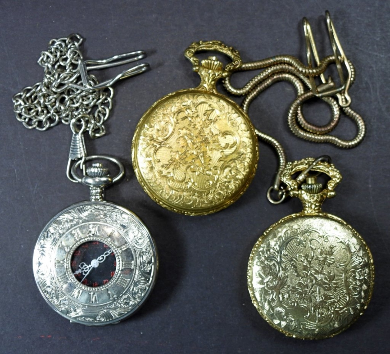 3 QUARTZ VINTAGE POCKET WATCHES, UNTESTED, SOME MAY BE BROKEN OR NEED REPAIRED, CAN BE USED FOR PARTS/REPAIR