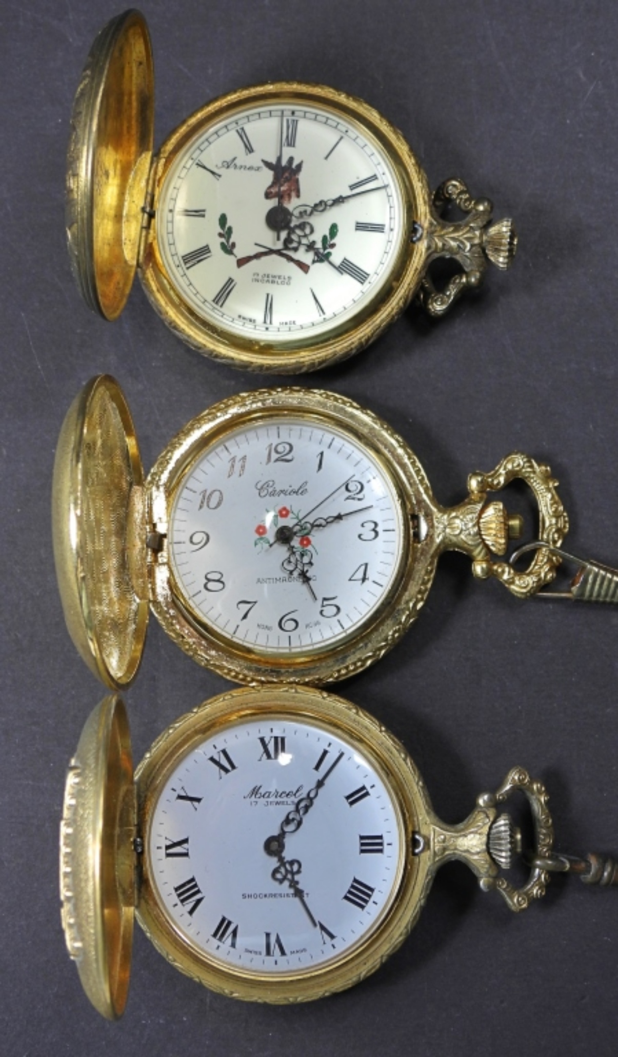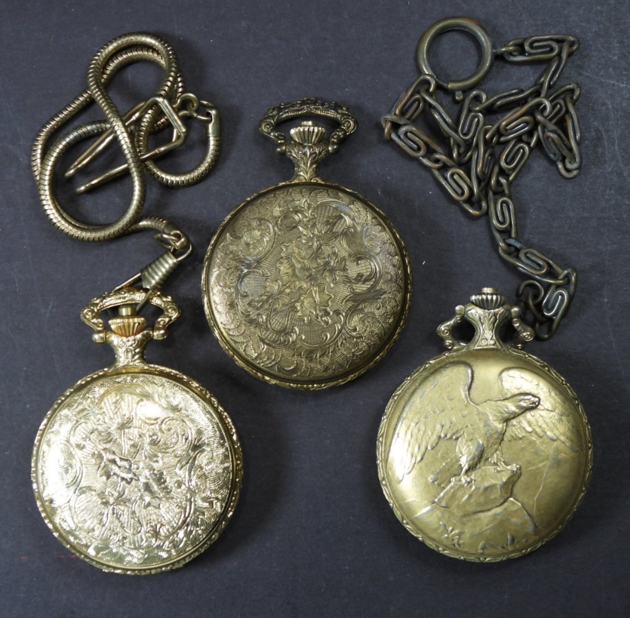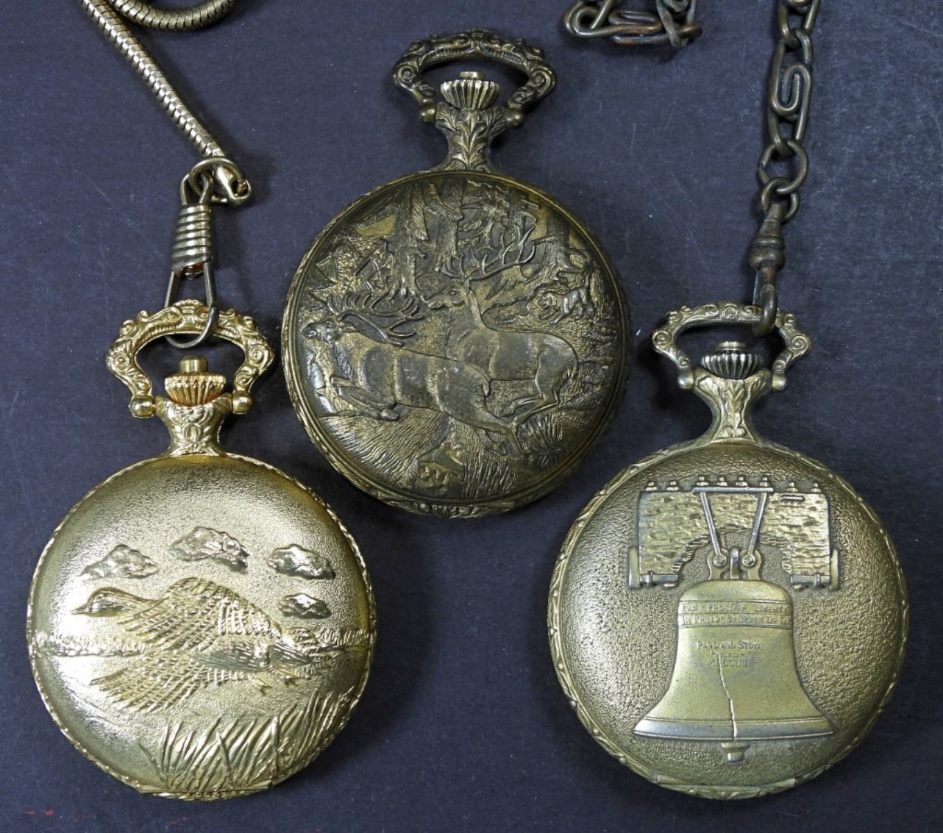 3 QUARTZ VINTAGE POCKET WATCHES, UNTESTED, SOME MAY BE BROKEN OR NEED REPAIRED, CAN BE USED FOR PARTS/REPAIR