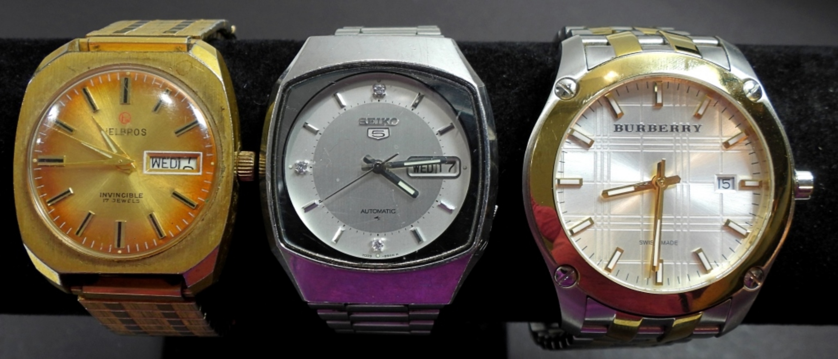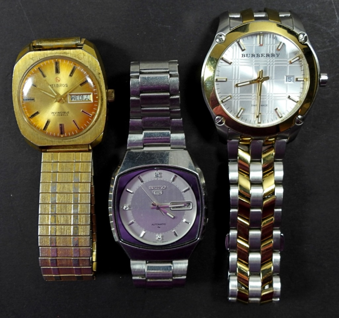 (2) RUNNING needs serviced HELBROS & SEIKO – BURBERRY NOT RUNNING FOR REPAIR LARGE SIZE BAND