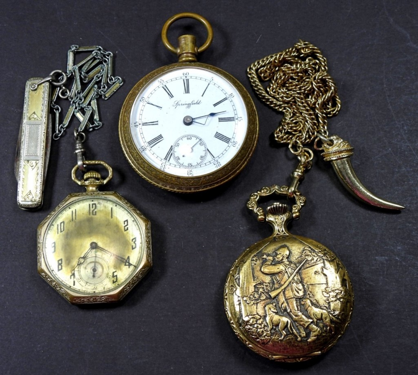 3 POCKET WATCHES FOR PARTS/REPAIR, UNTESTED, SOME MAY WORK SOME MAY NOT WORK COULD BE USED FOR PARTS/REPAIR, BRANDS (SPRINGFIELD, AMERICAN HERITAGE, AND 1 UNKNOWN)