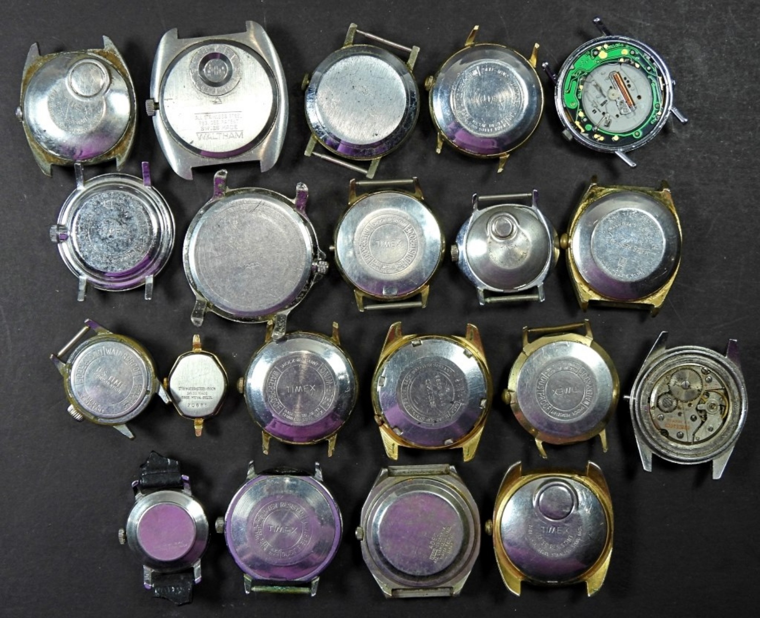 20 VARIETY WATCH FACES FOR PARTS/REPAIR, UNTESTED, SOME MAY WORK SOME MAY NOT WORK COULD BE USED FOR PARTS/REPAIR, BRANDS (TIMEX, SEIKO, AND MORE)