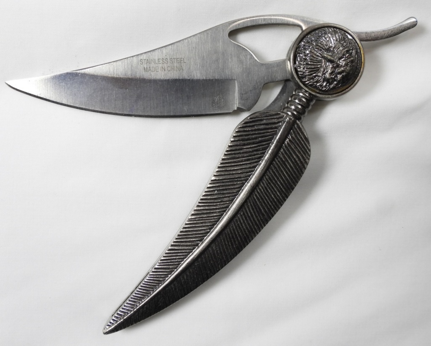 3 inch blade Indian feather knfie with lighter set in original wooden box