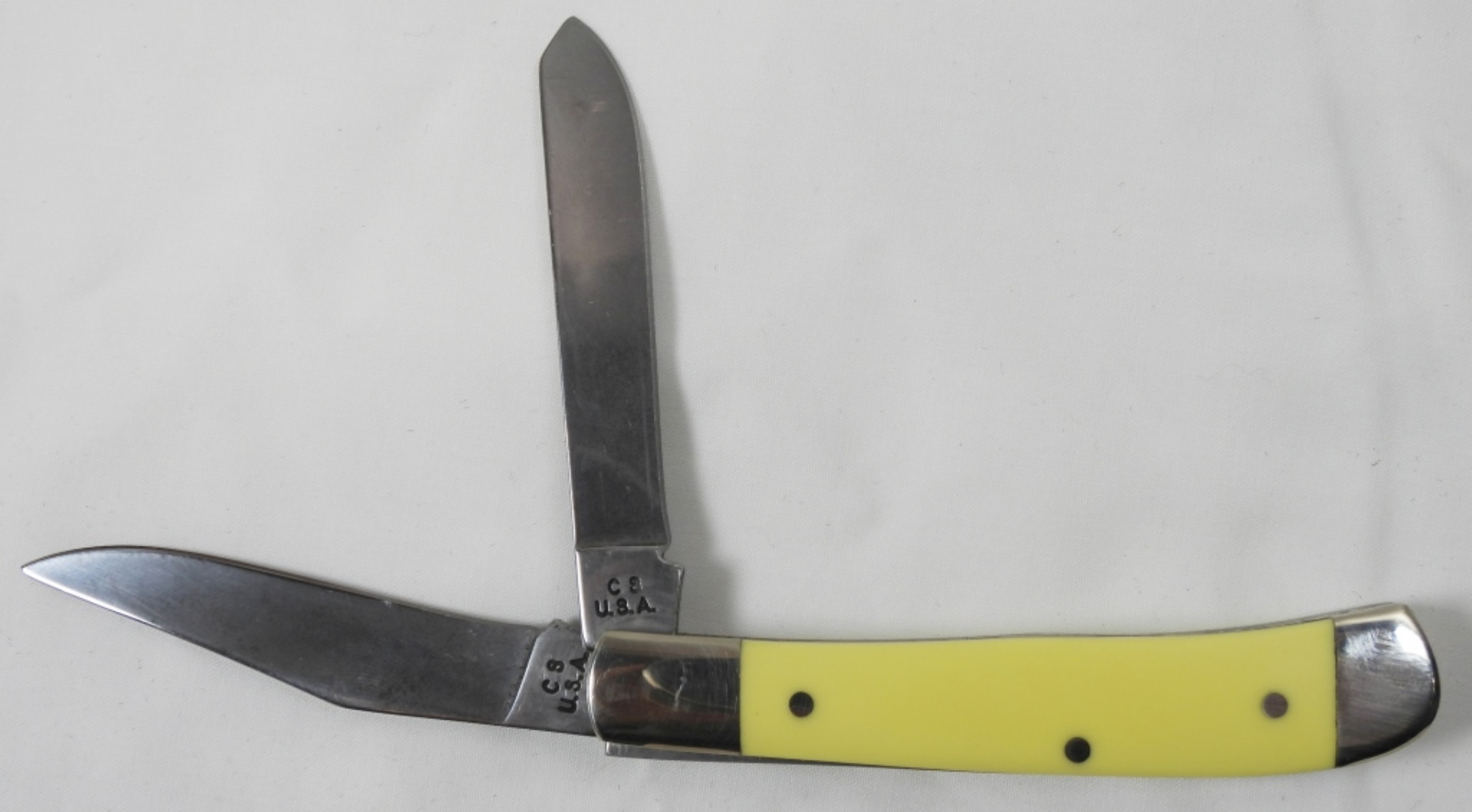 Bear & Son Carbon 4th Generation multi blade pocket knife, yellow, in original tin case