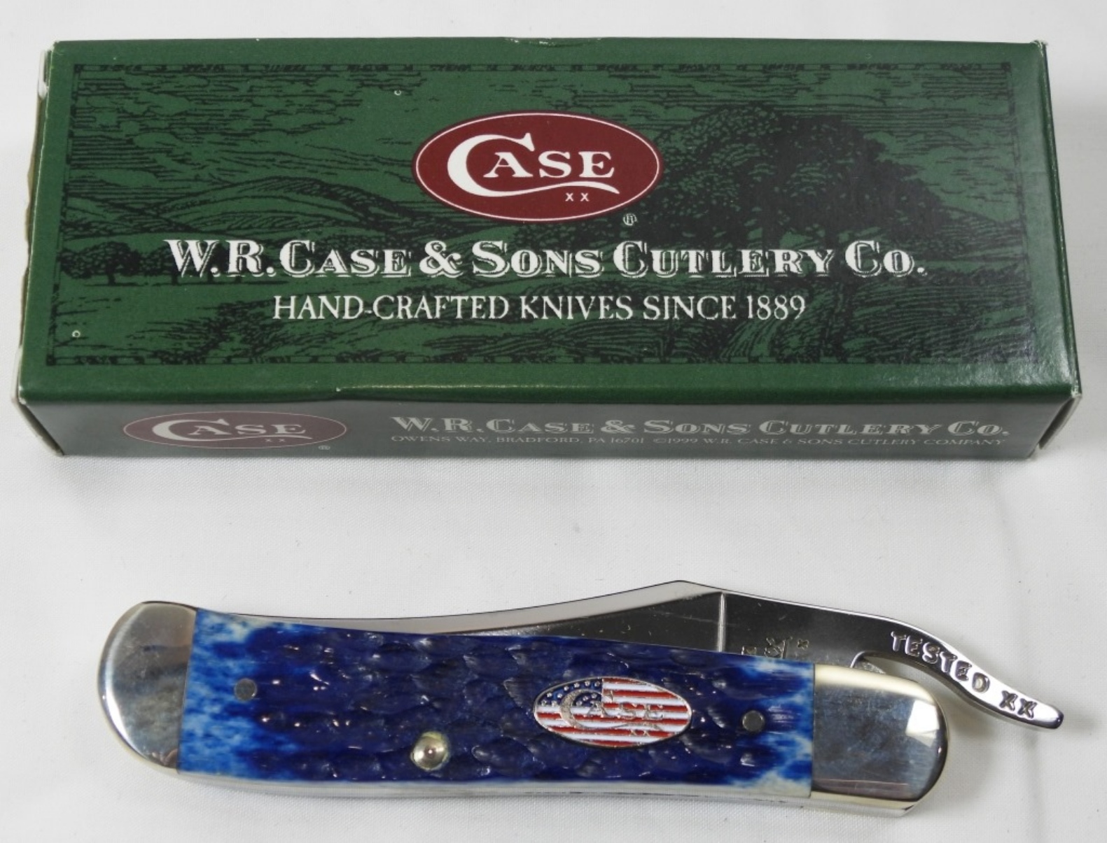 2.5 inch blade, navy blue folding pocket knife by Case XX, original box, 20045