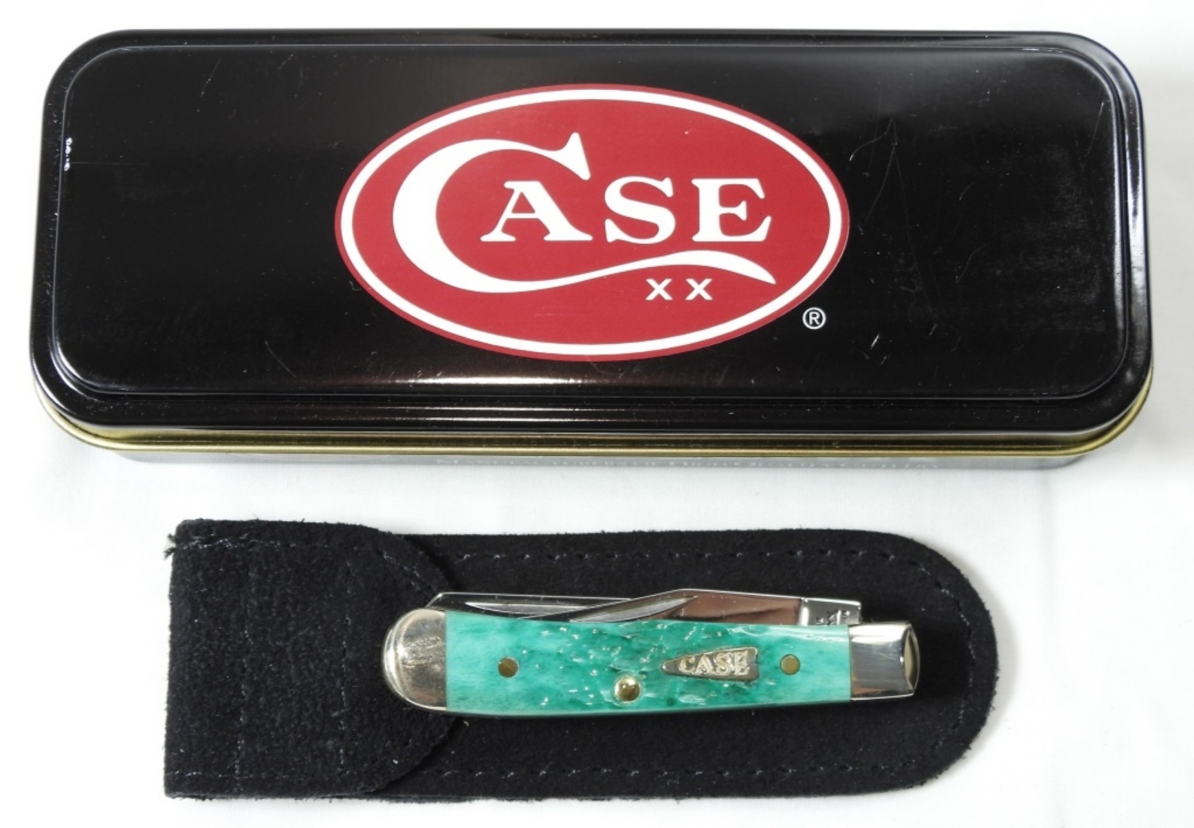 multi blade Case XX trapper in jade with a sheath in original tin