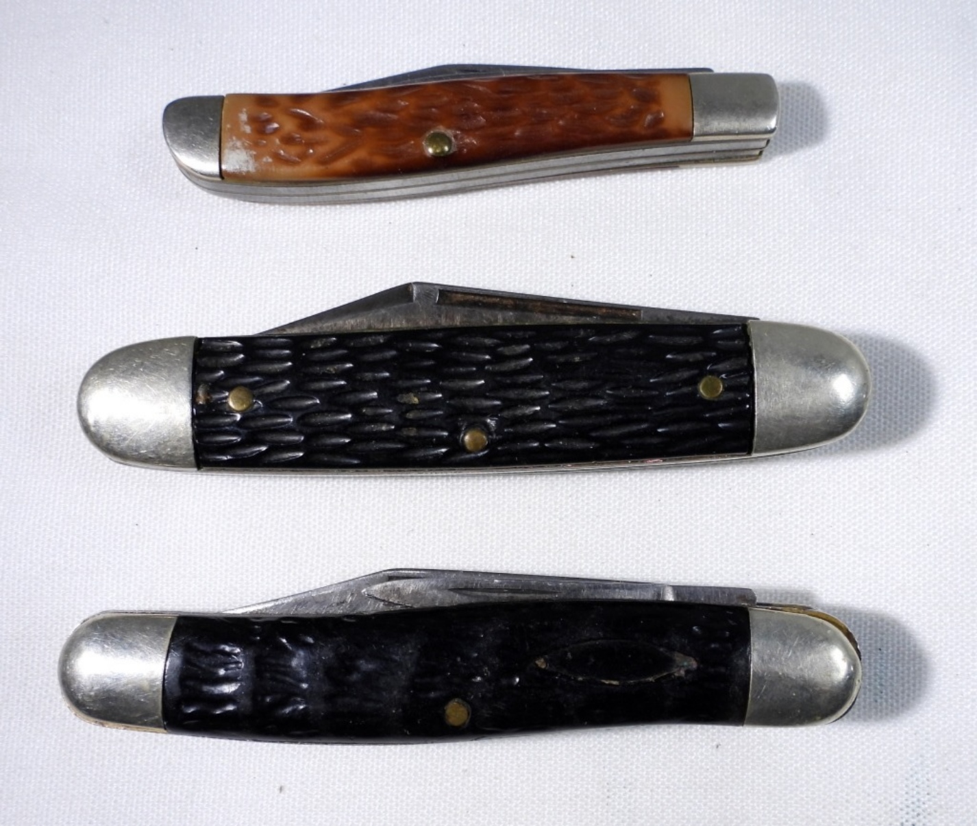 3 assorted sizes, brands, and color, pocket knives