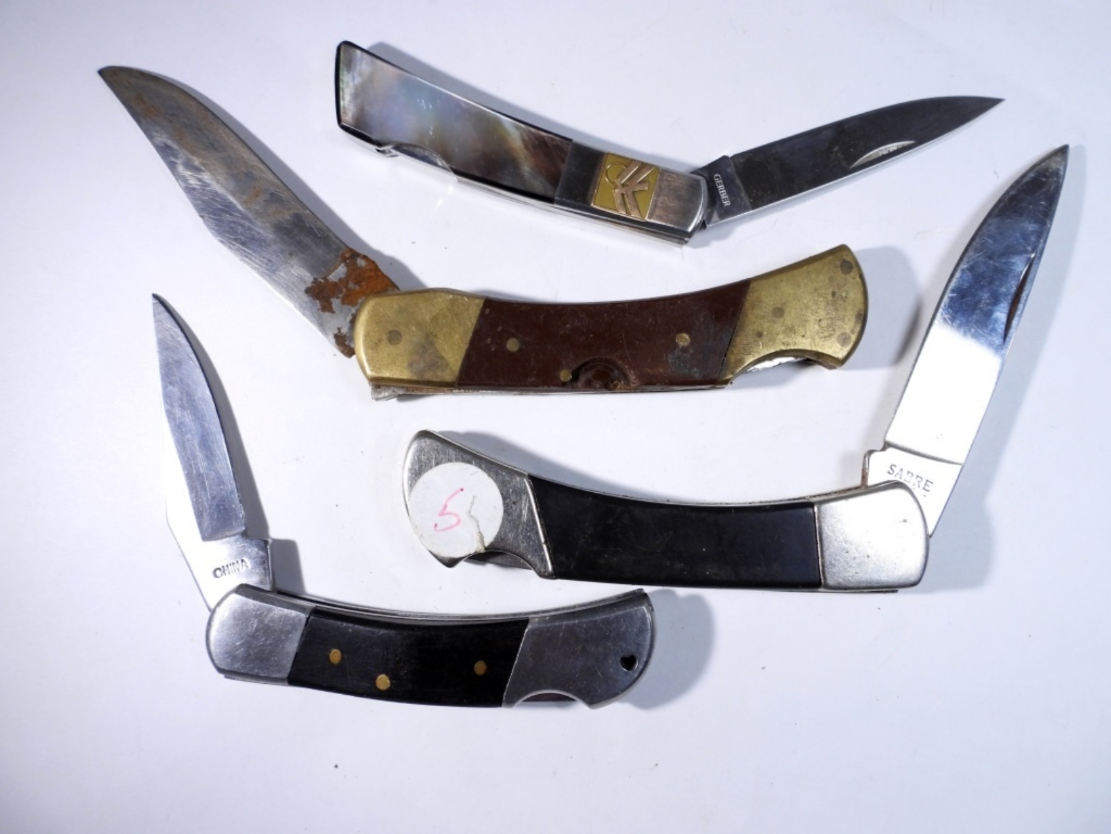 4 various brands, colors and sizes lock back pocket knives