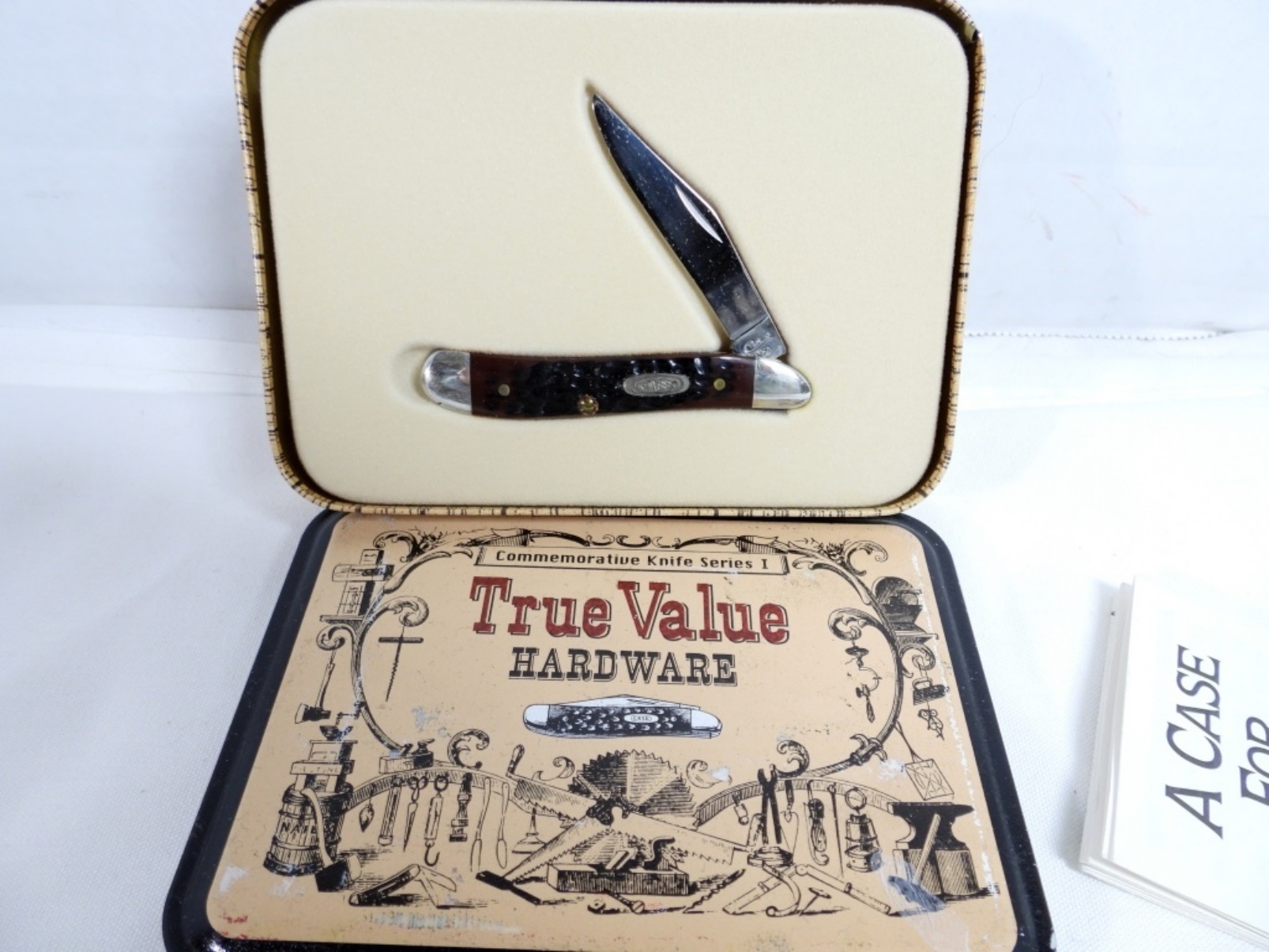 True Value Case XX Knife. Multi blade, brown, in original tin