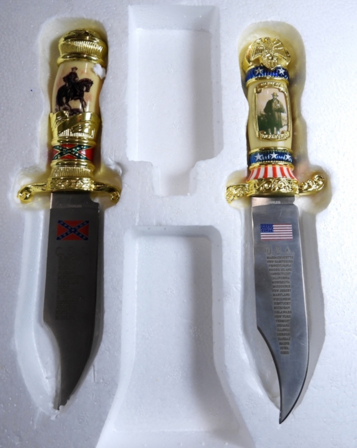 Set of 2 Civil War Bowie Knives with plaque, 4.5 inch blade