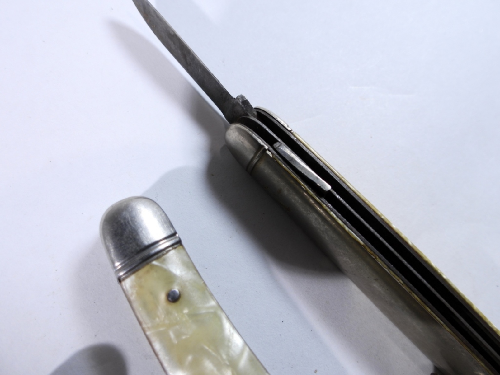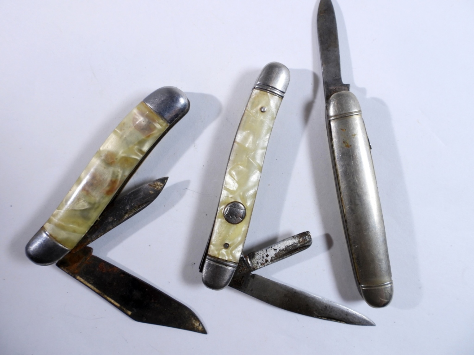 (3) MEDIUM PEARL POCKET KNIVES, USED/ PRE-OWNED