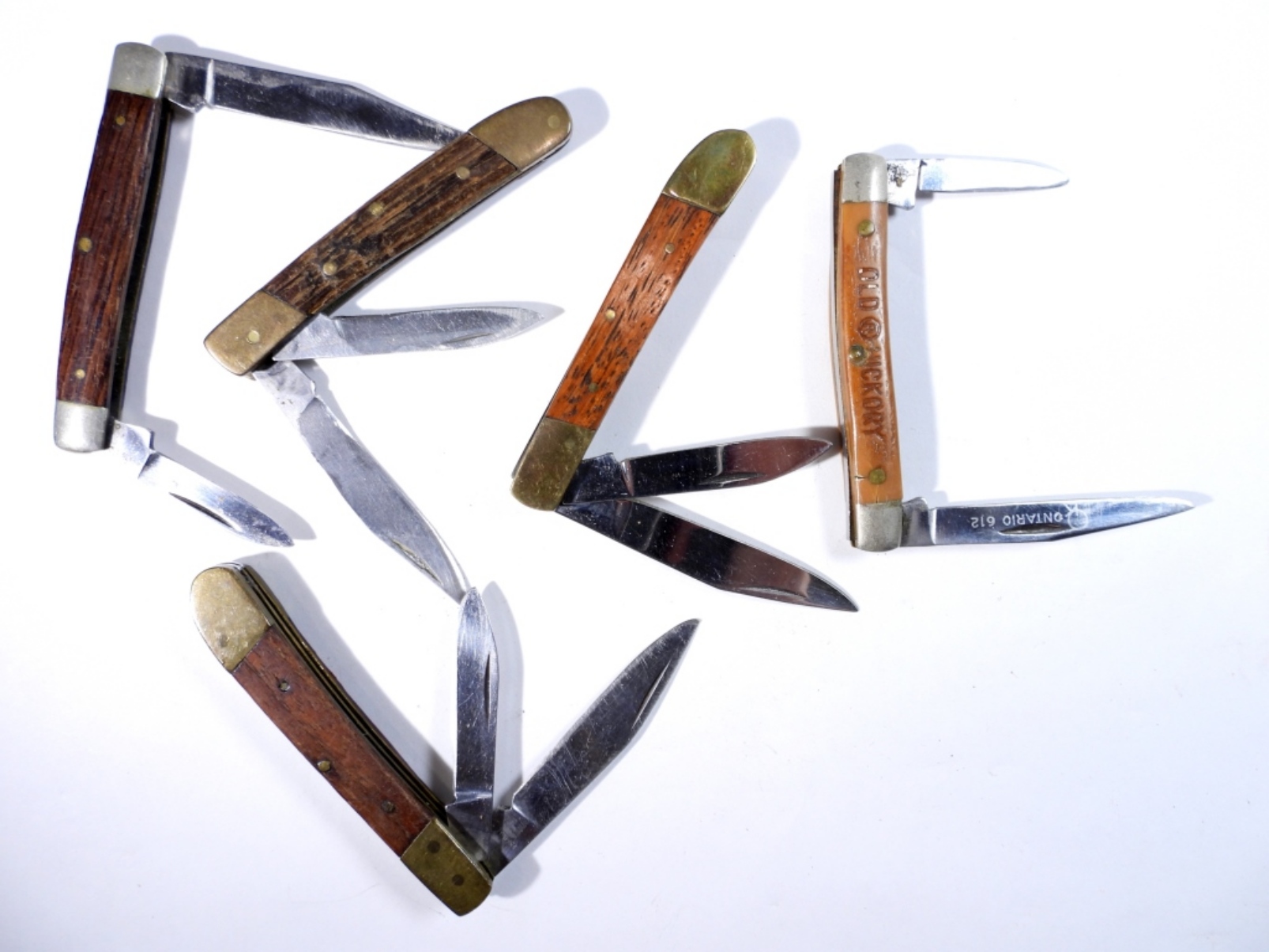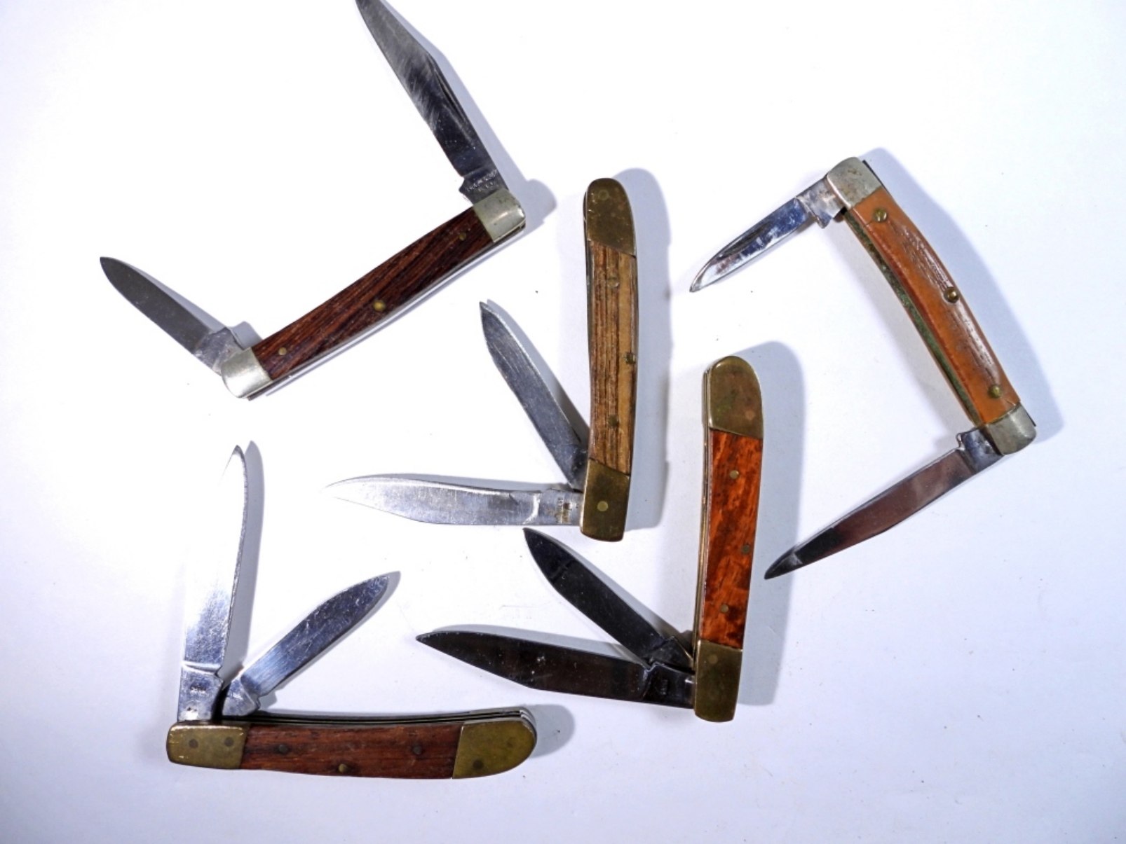 (5) MINI WOODEN HANDLE POCKET KNIVES, USED/PRE-OWNED