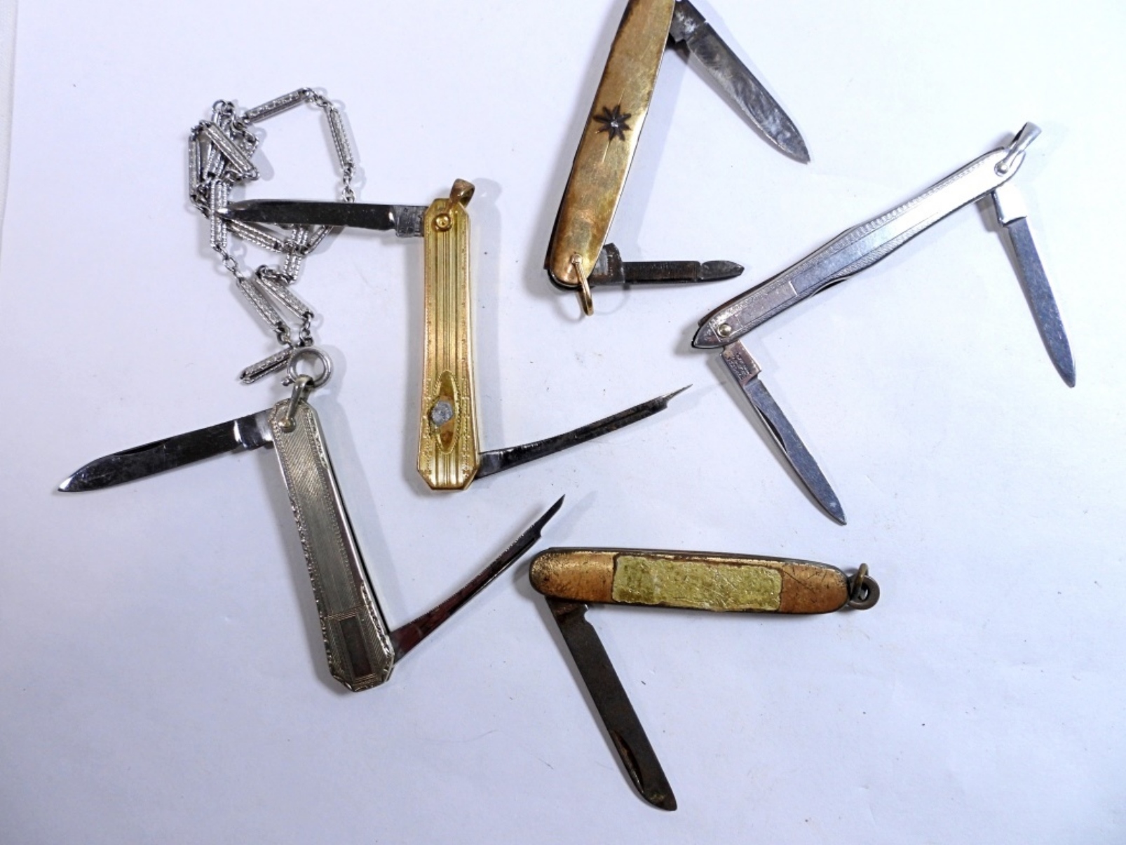 (5) VINTAGE METAL MINI POCKET KNIVES, USED/PRE-OWNED