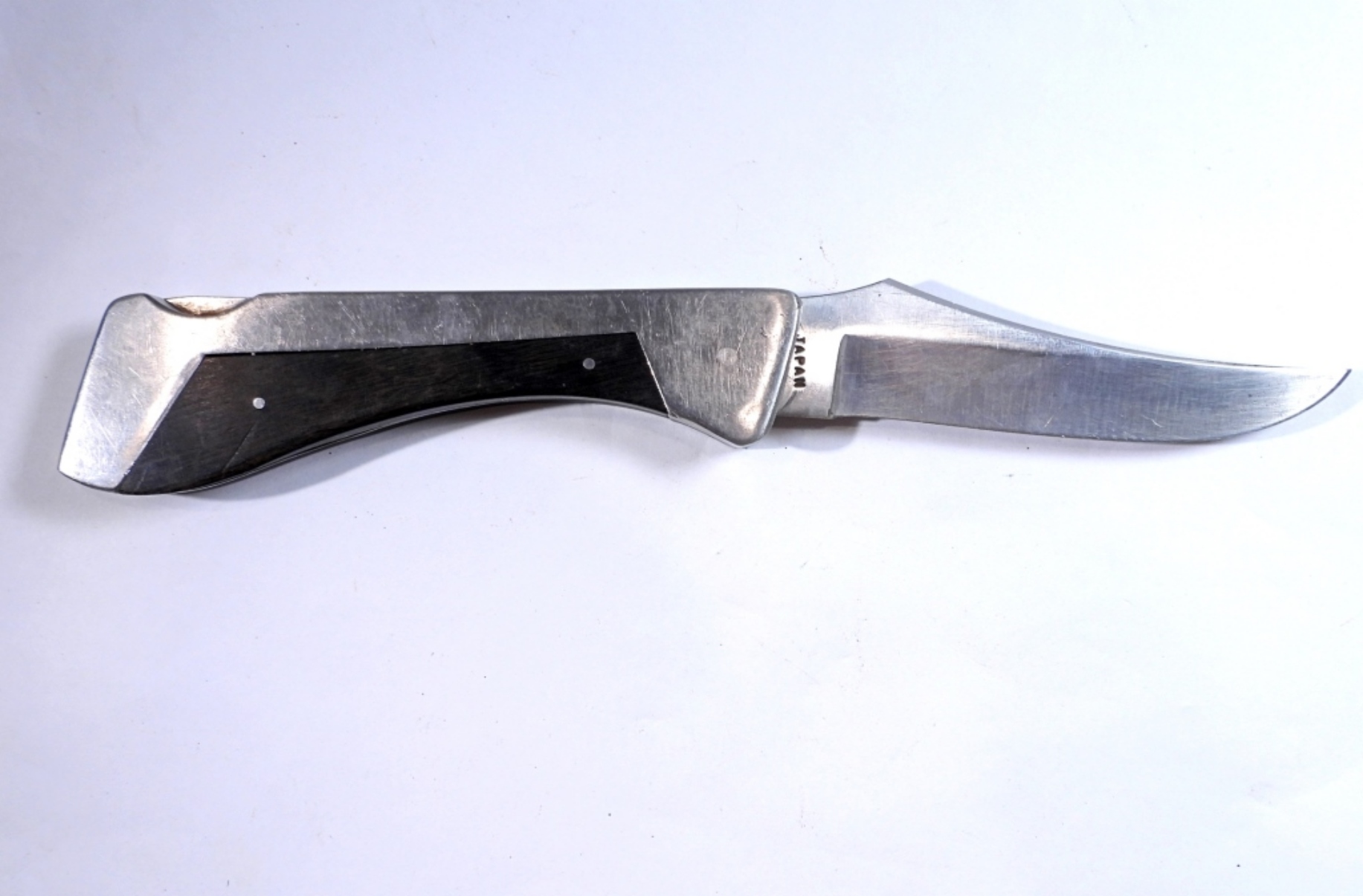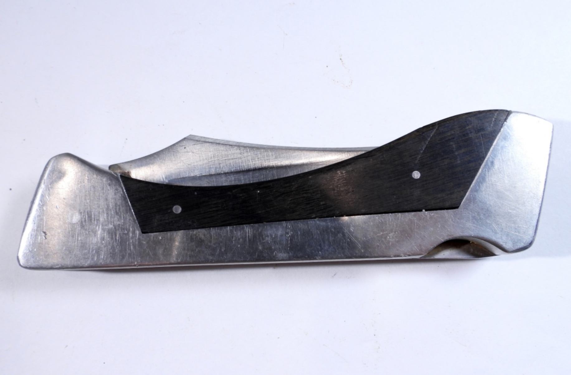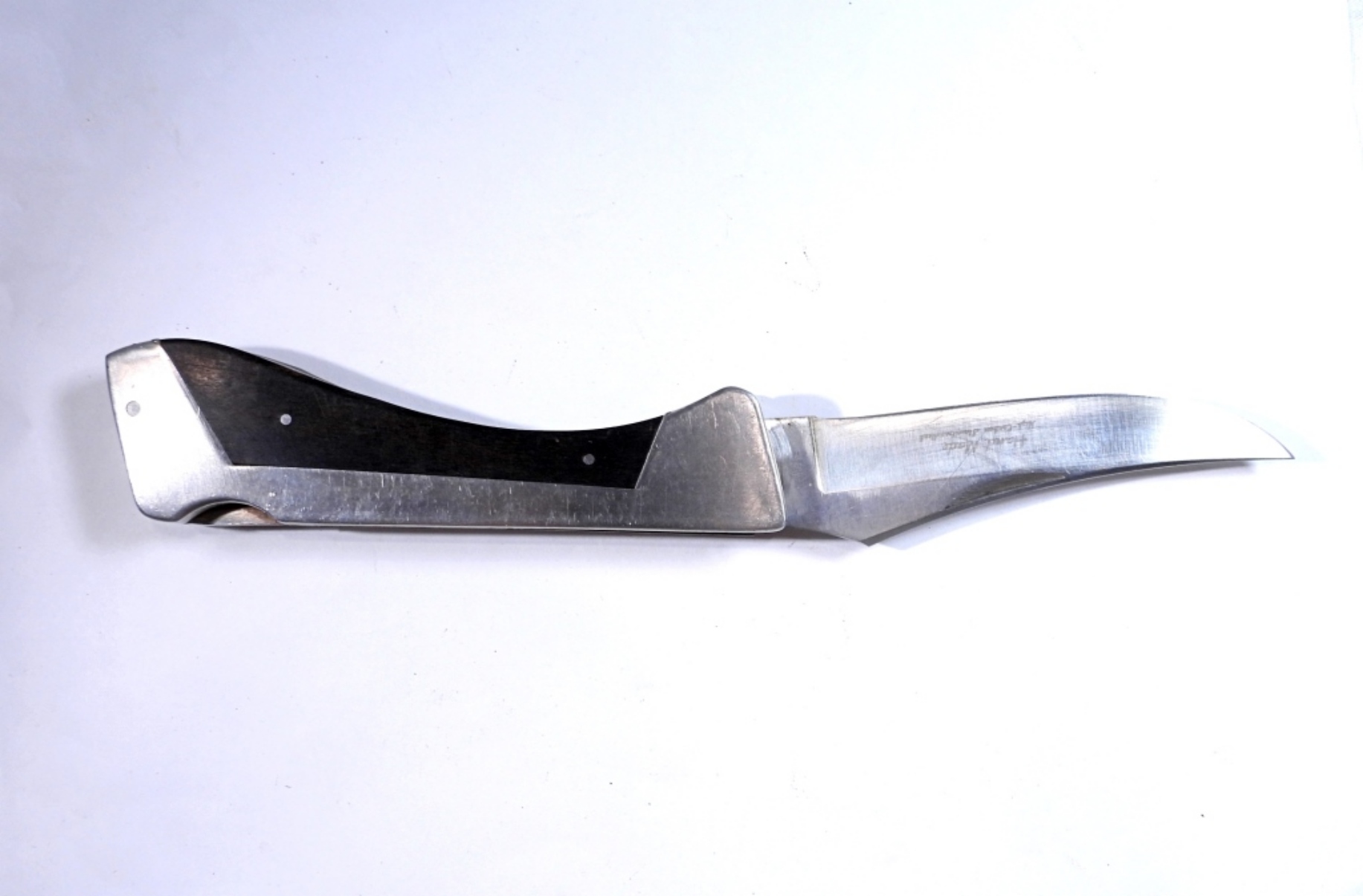 Lock back ‘hand made’ pocket knife, dark wood handle