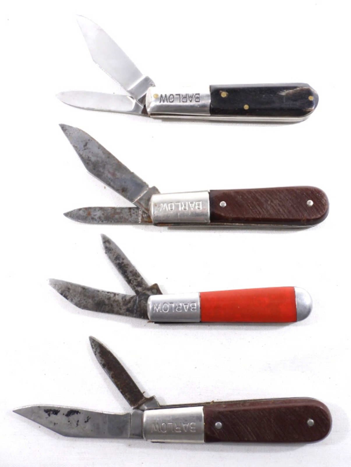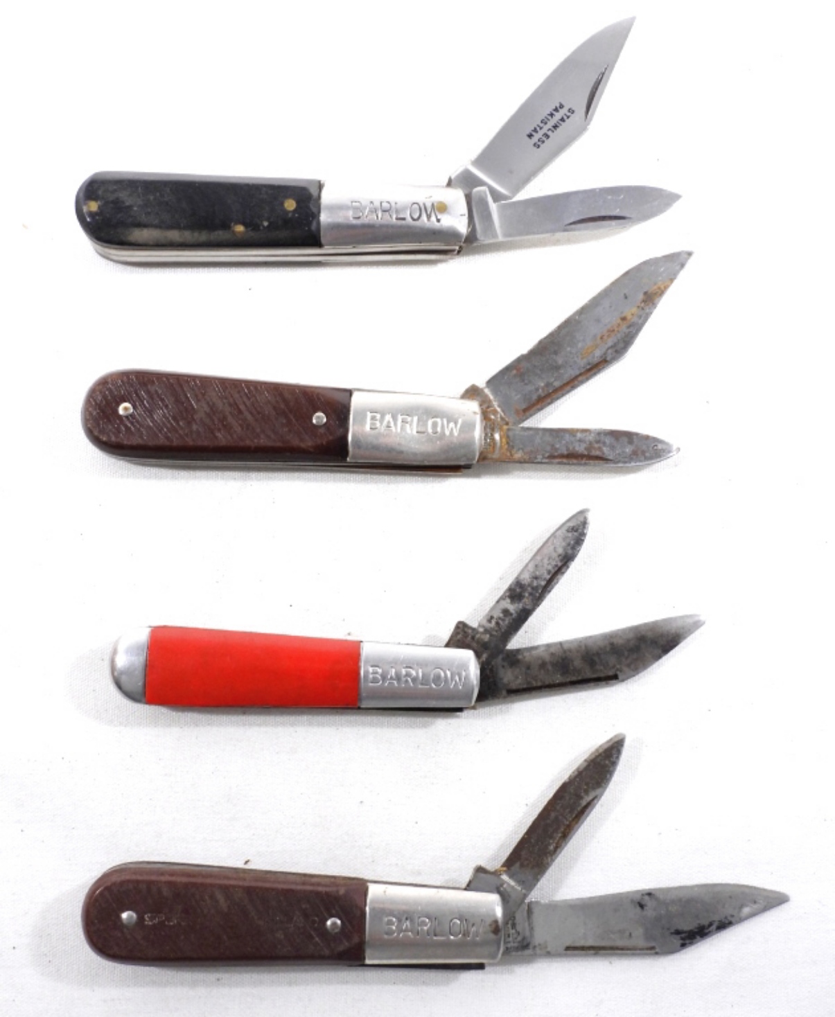 4 ASSORTED COLORS/STYLES BARLOW POCKET KNIVES. IN MIXED CONDITIONS