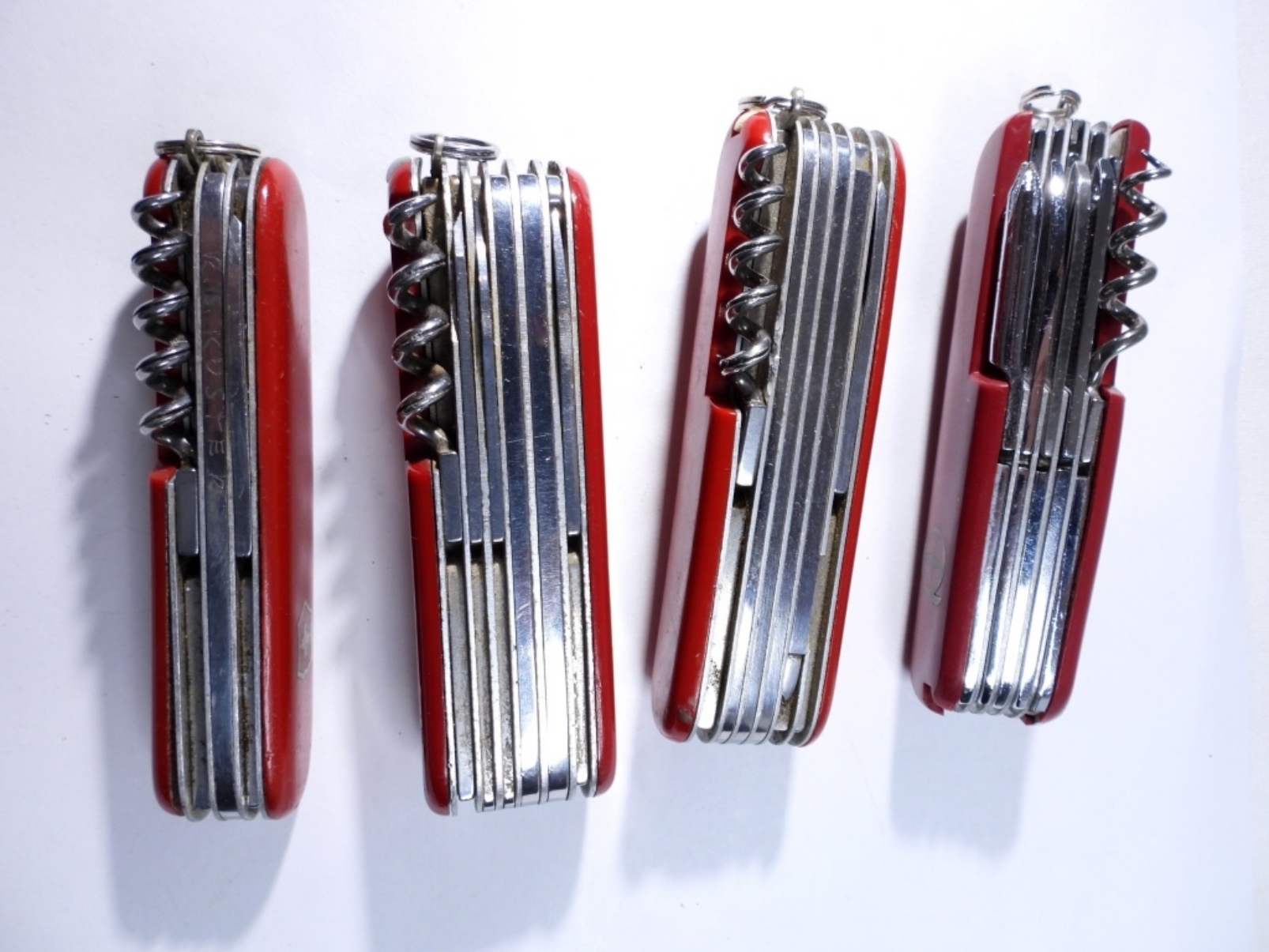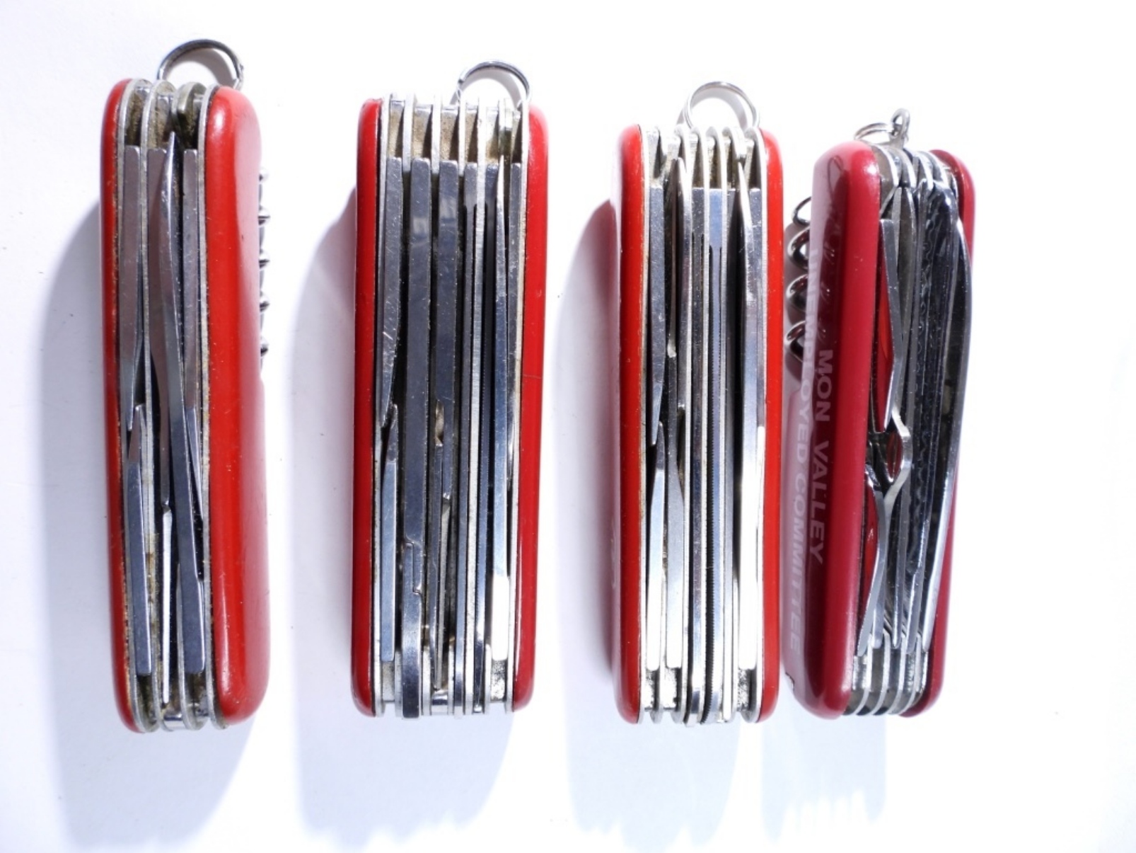 (4) RED MULTI-TOOL KNIVES, USED/PRE-OWNED