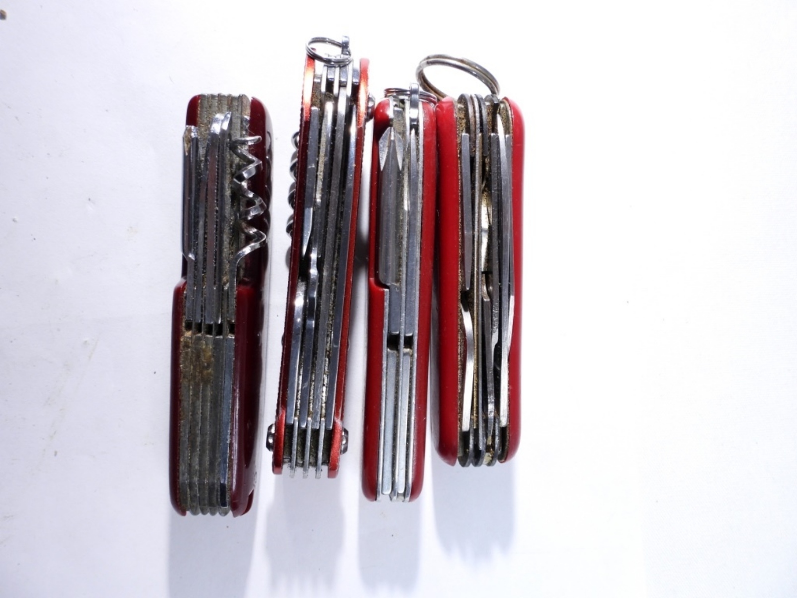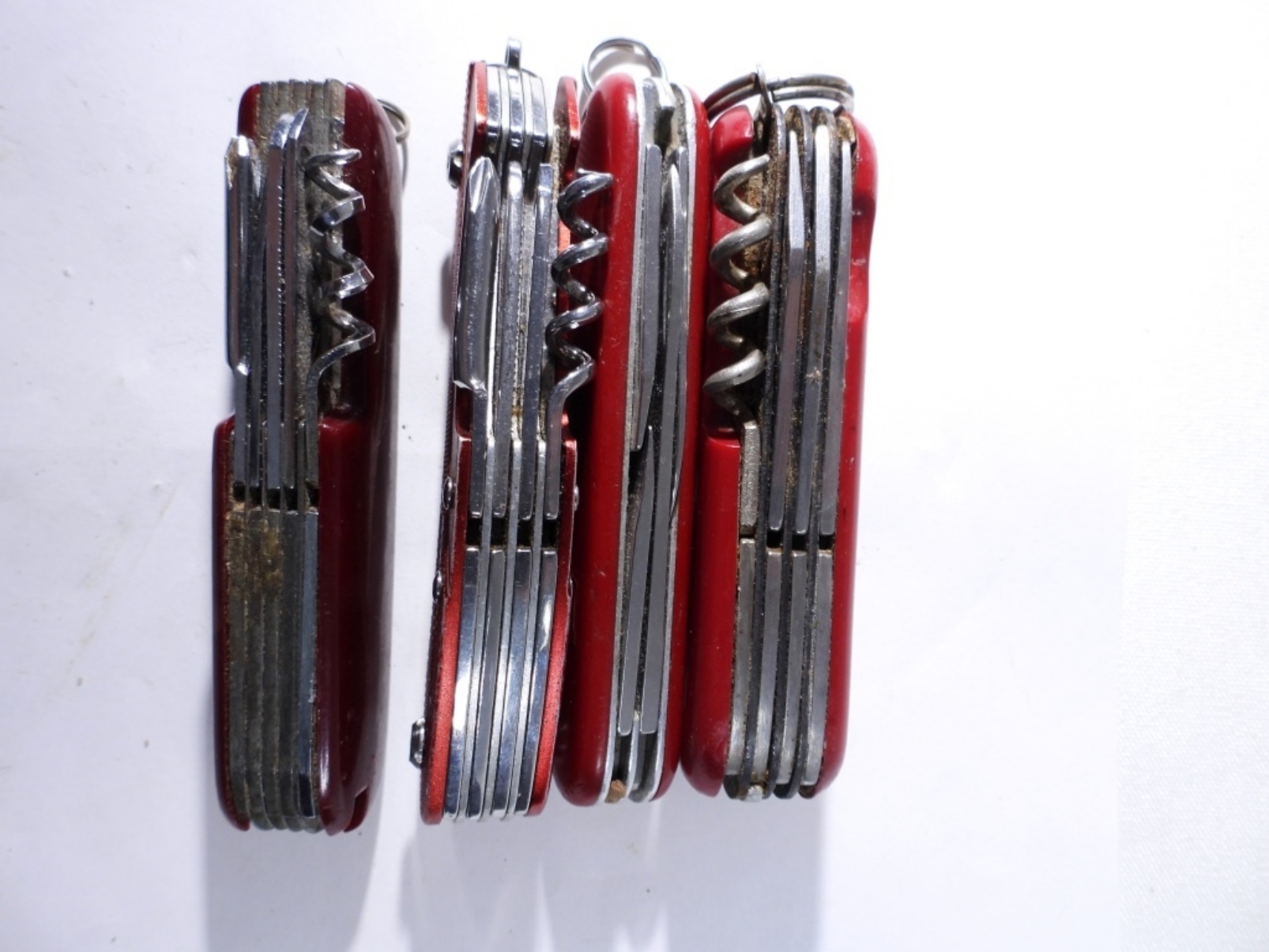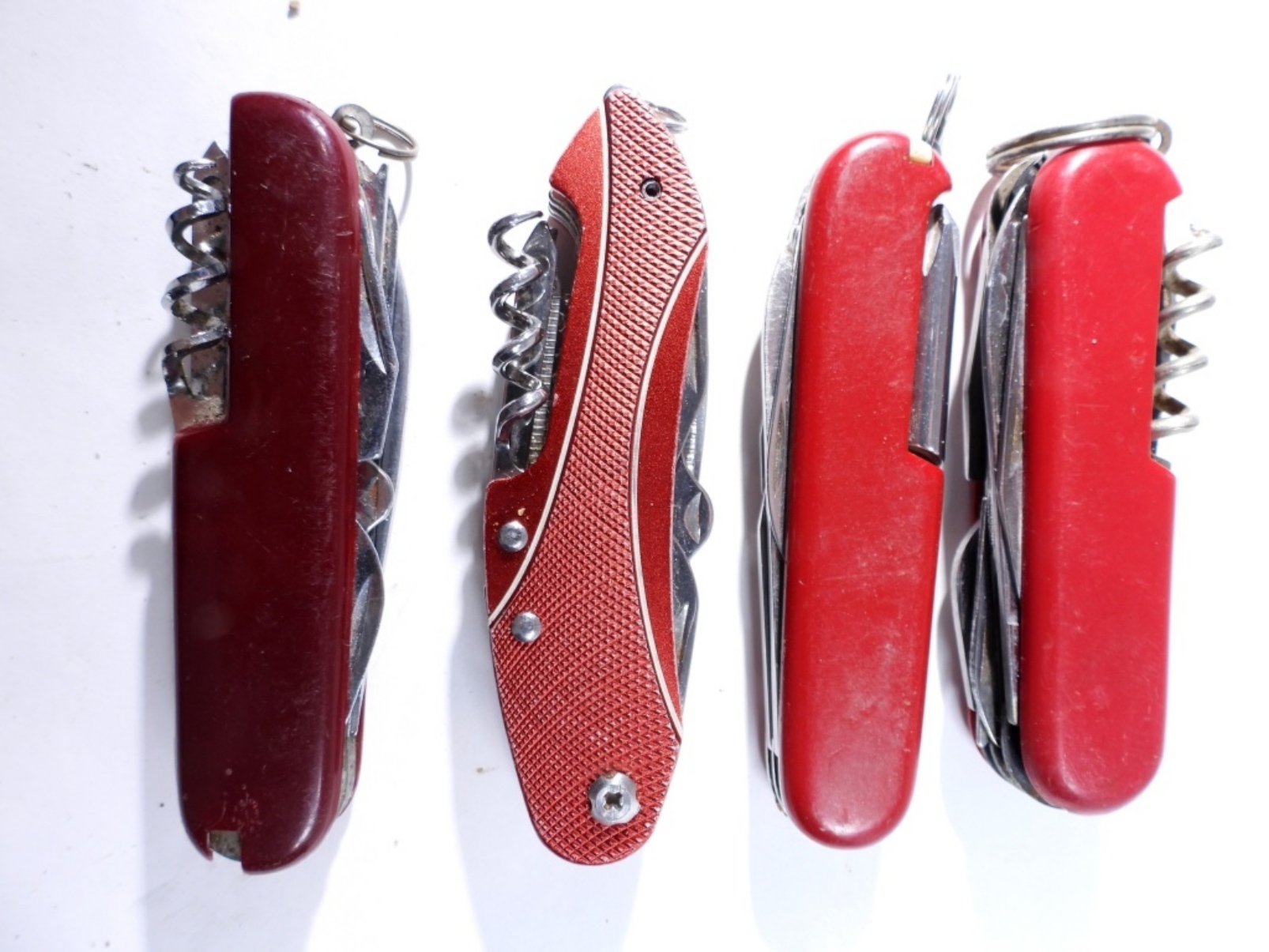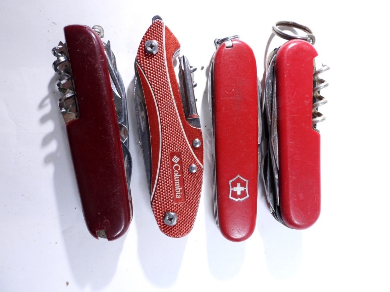 (4) RED MULTI-TOOL KNIVES, USED/PRE-OWNED