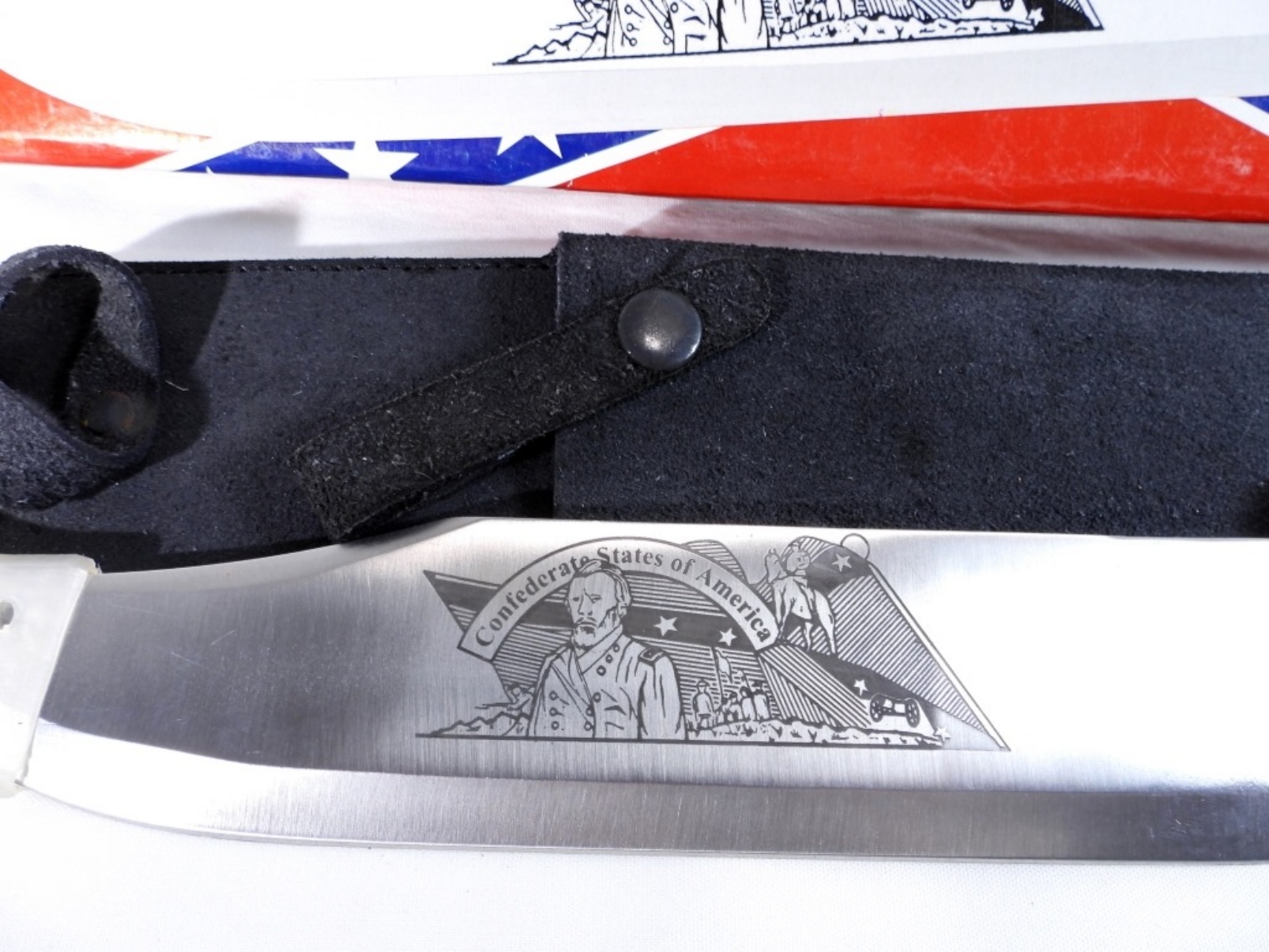 CONFEDERATE BOWIE KNIFE, BLADE 10”, KNIFE 15” ALL TOGETHER, KNIFE COMES IN ORIGINAL BOX AND SHEATH