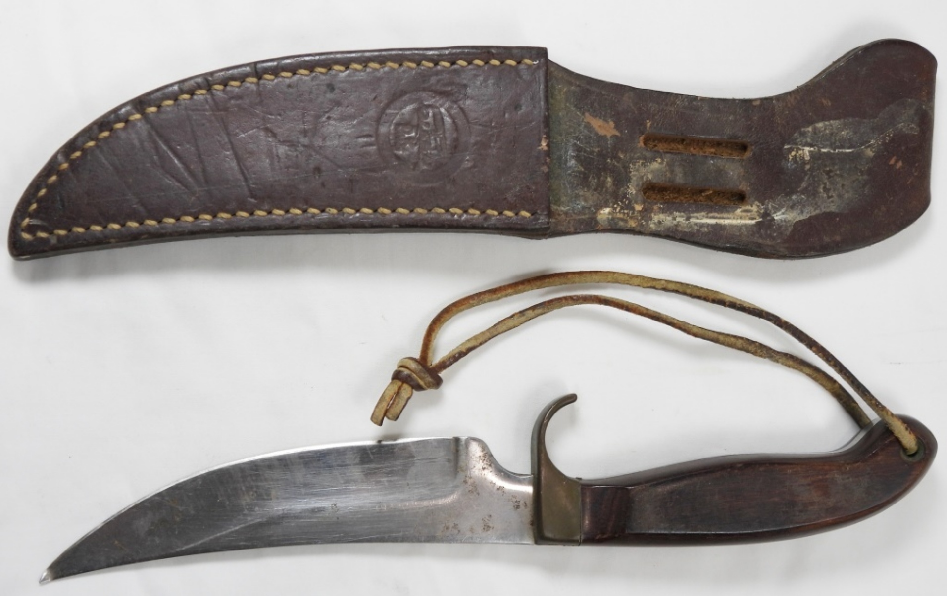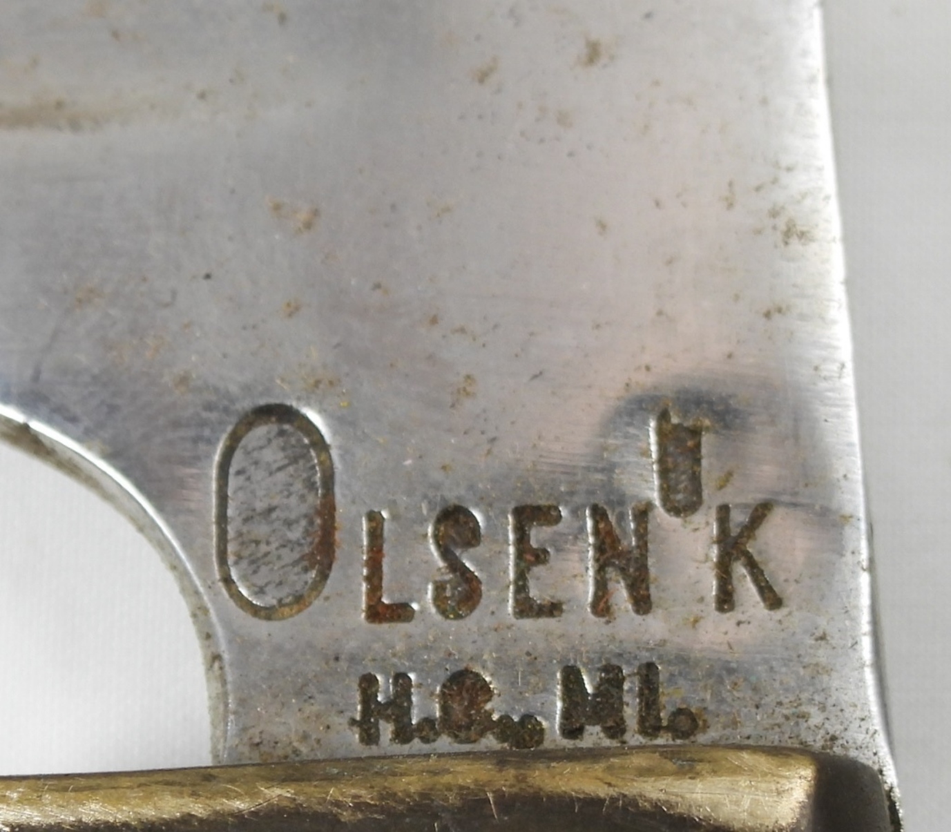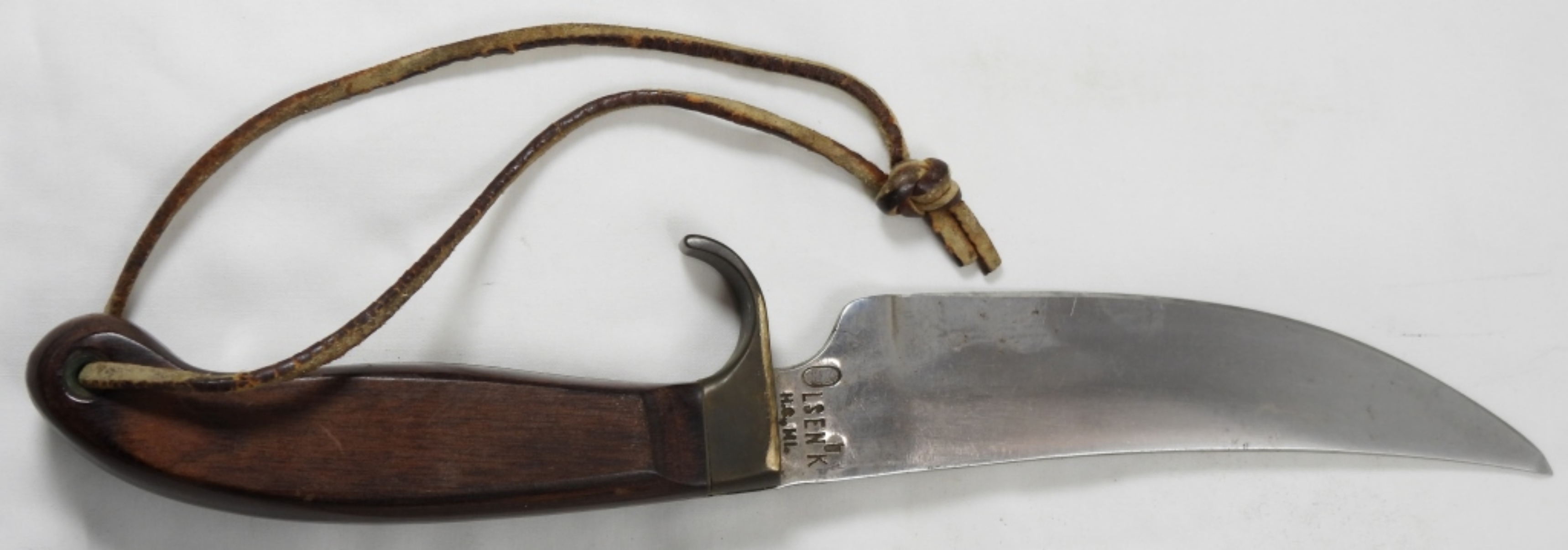 OLSEN OK HUNTING KNIFE, BLADE 5.5”, KNIFE 10.5” ALL TOGETHER, KNIFE DOES COME WITH ORIGINAL SHEATH, SLIGHT BEND ON THE TIP OF THE KNIFE
