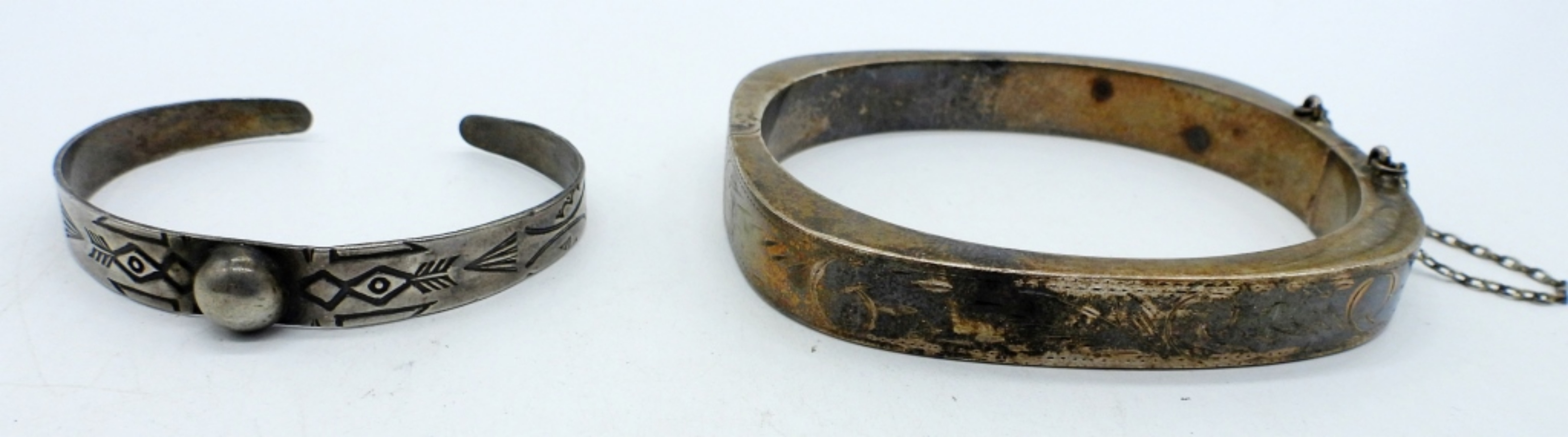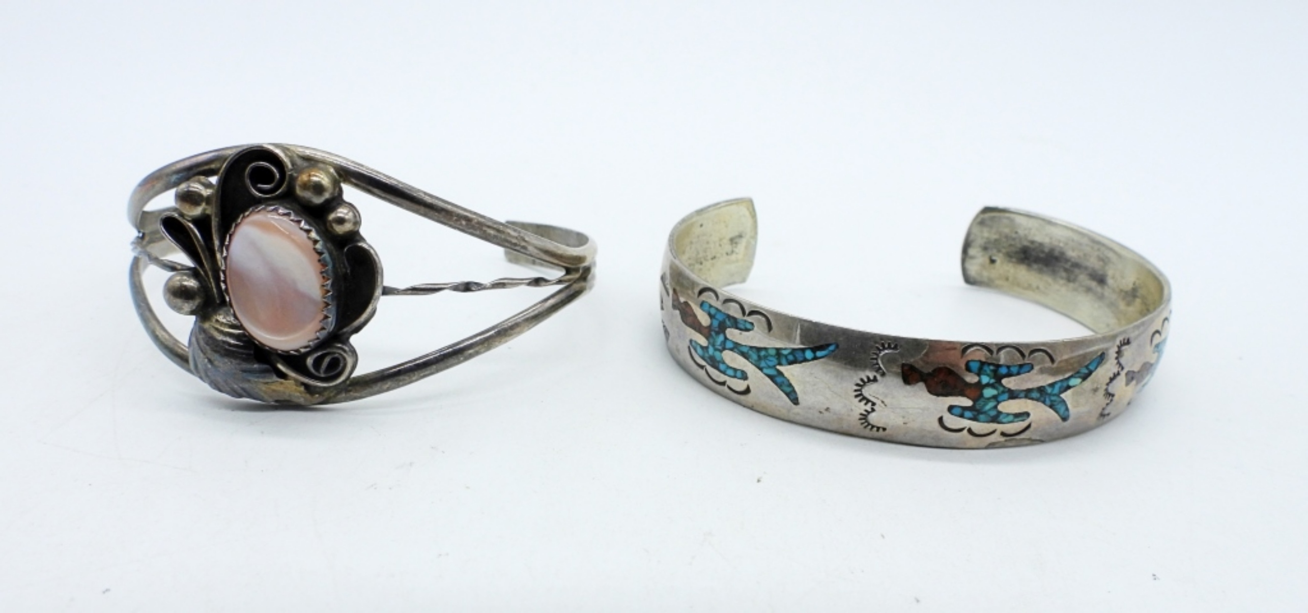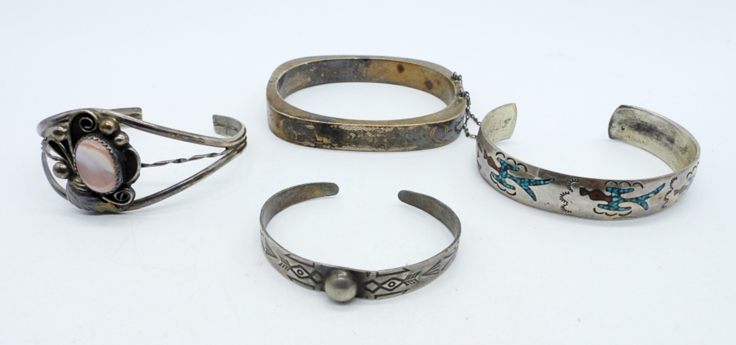 5″ – 8″. FOUR STERLING, SOUTHWEST STYLE BRACELETS. (37 DWT)