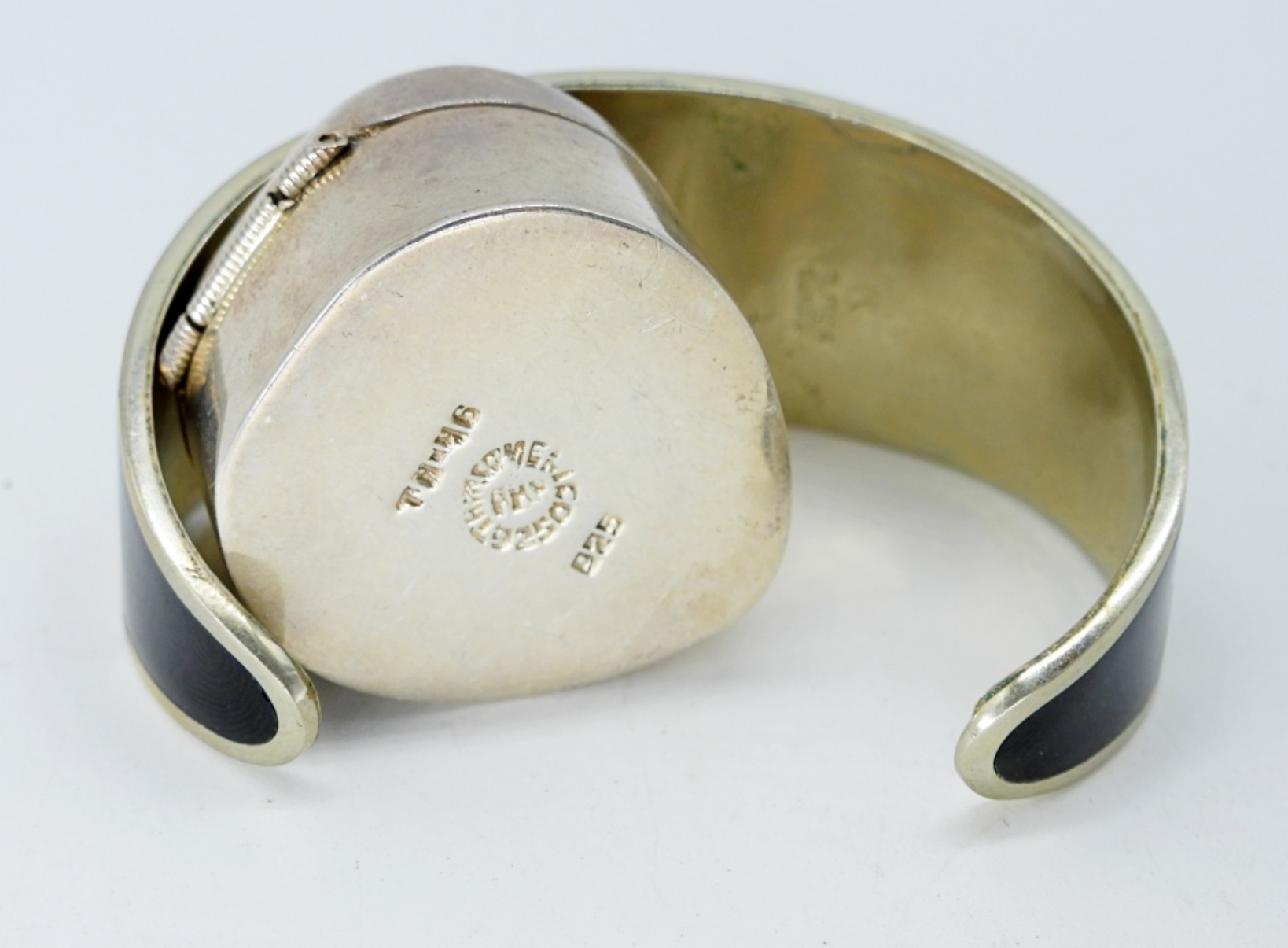 ALPACA MEXICO 925, ABALONE INLAY CUFF BRACELET, 7″. TAXCO MEXICO 925 HEART SHAPED TRINKET BOX, TH-46. 1″ WIDE, 1″ TALL. (23.3 DWT)
