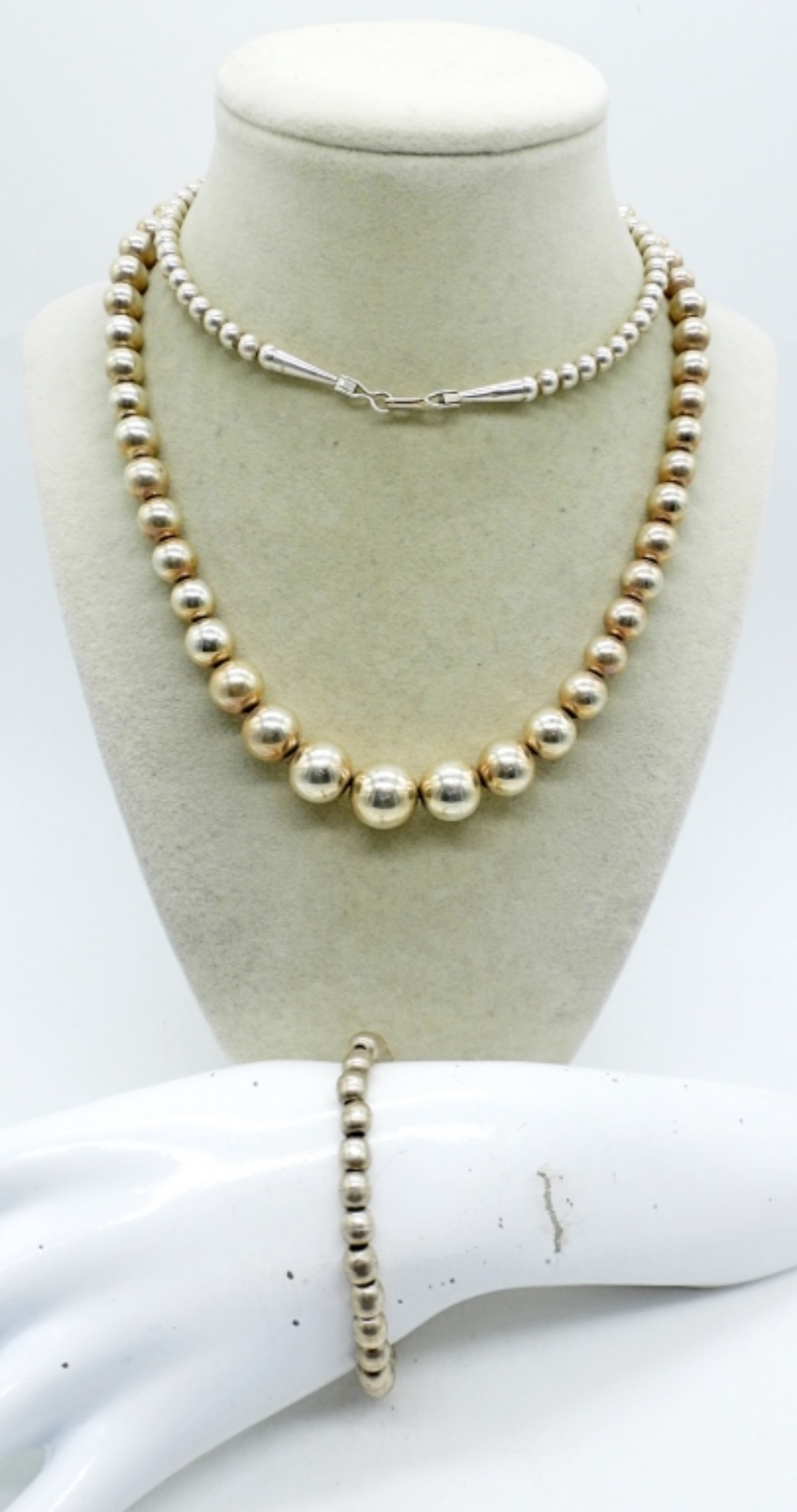 STERLING BALL BEAD NECKLACE 29″ & MATCHING BRACELET 7″ (39.2 DWT)