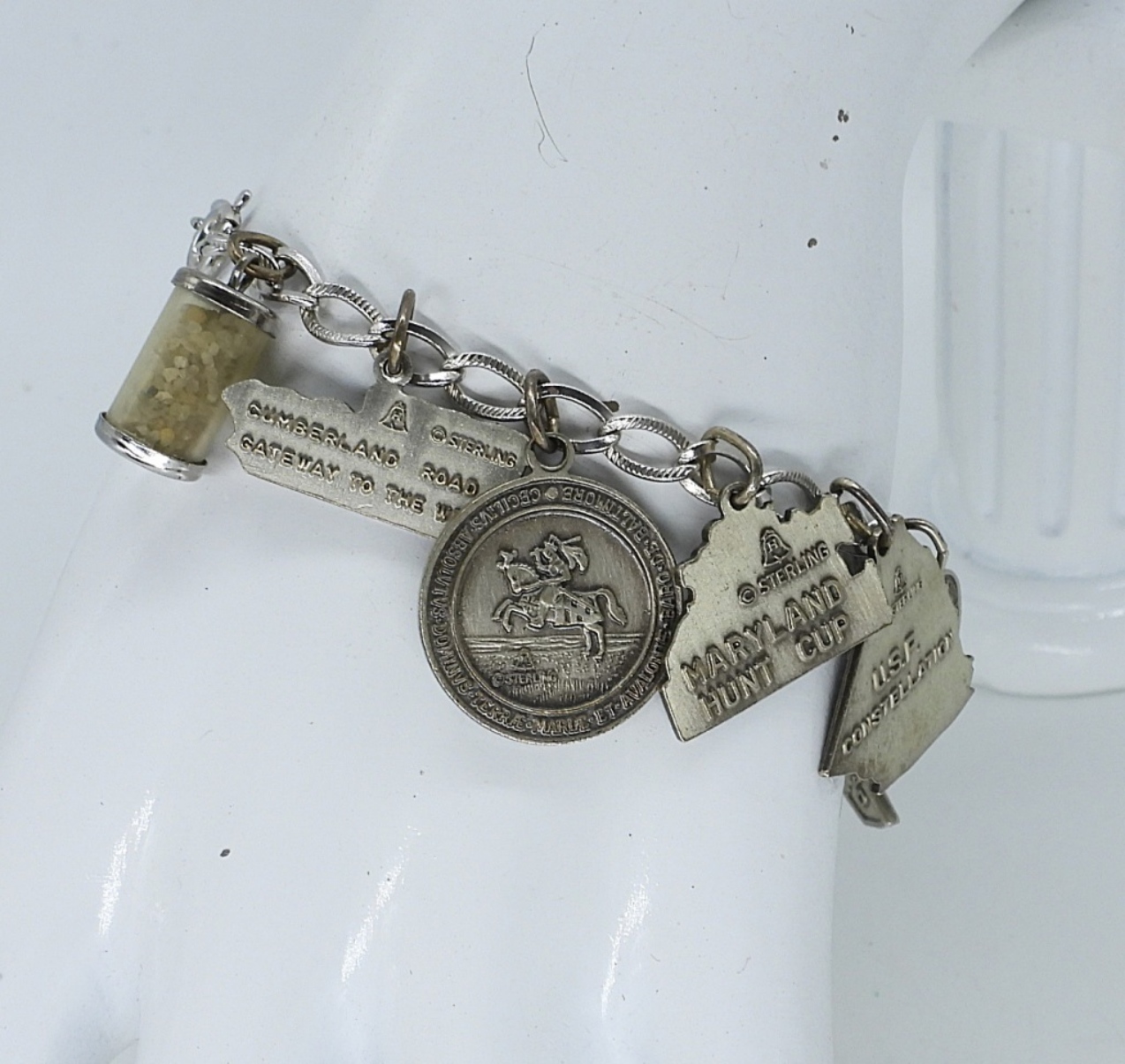VINTAGE STERLING CHARM BRACELET WITH 12 STERLING CHARMS. 7″. (27.1 DWT)