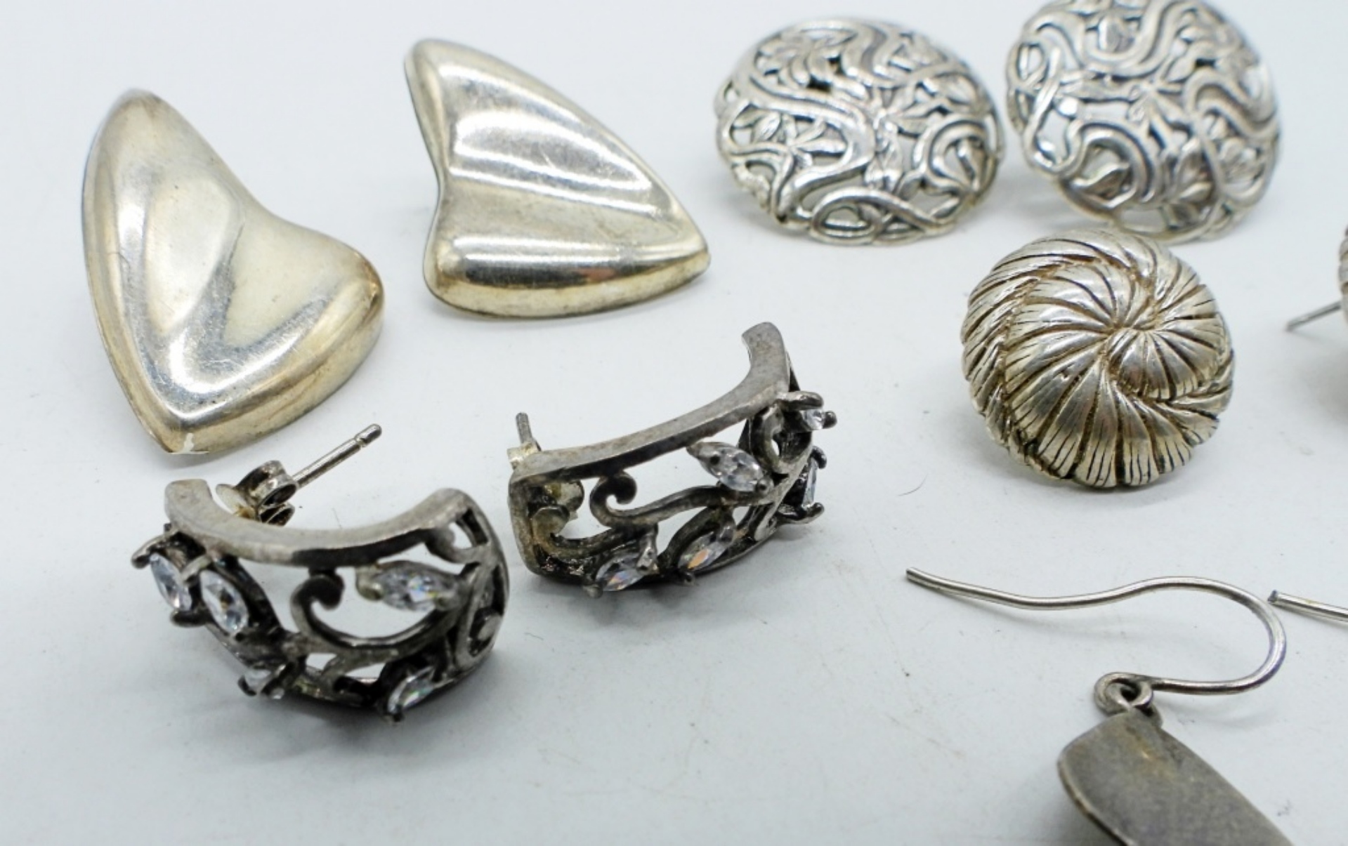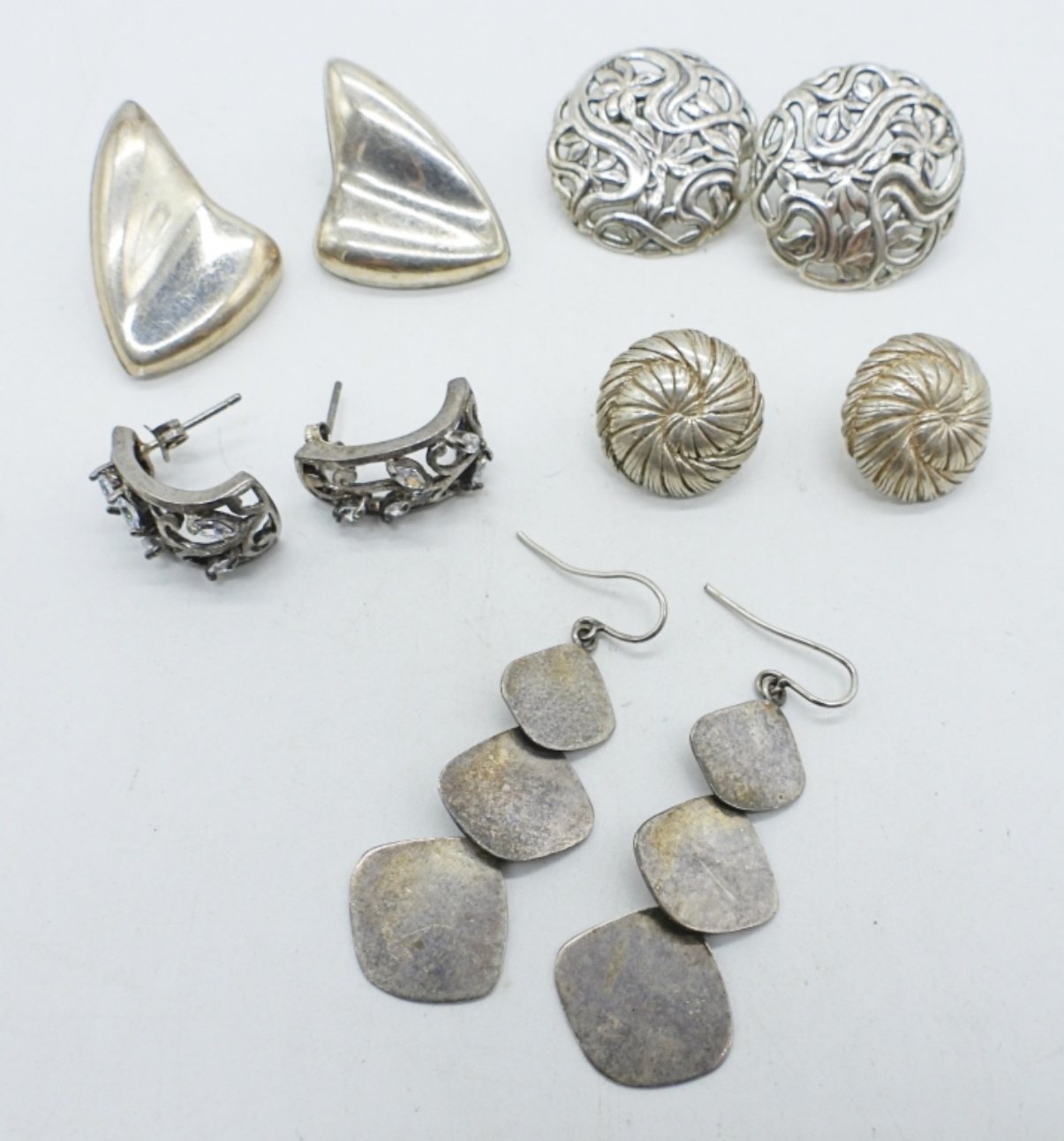 FIVE PAIR OF VINTAGE STERLING PIERCED EARRINGS. (17.6 DWT)