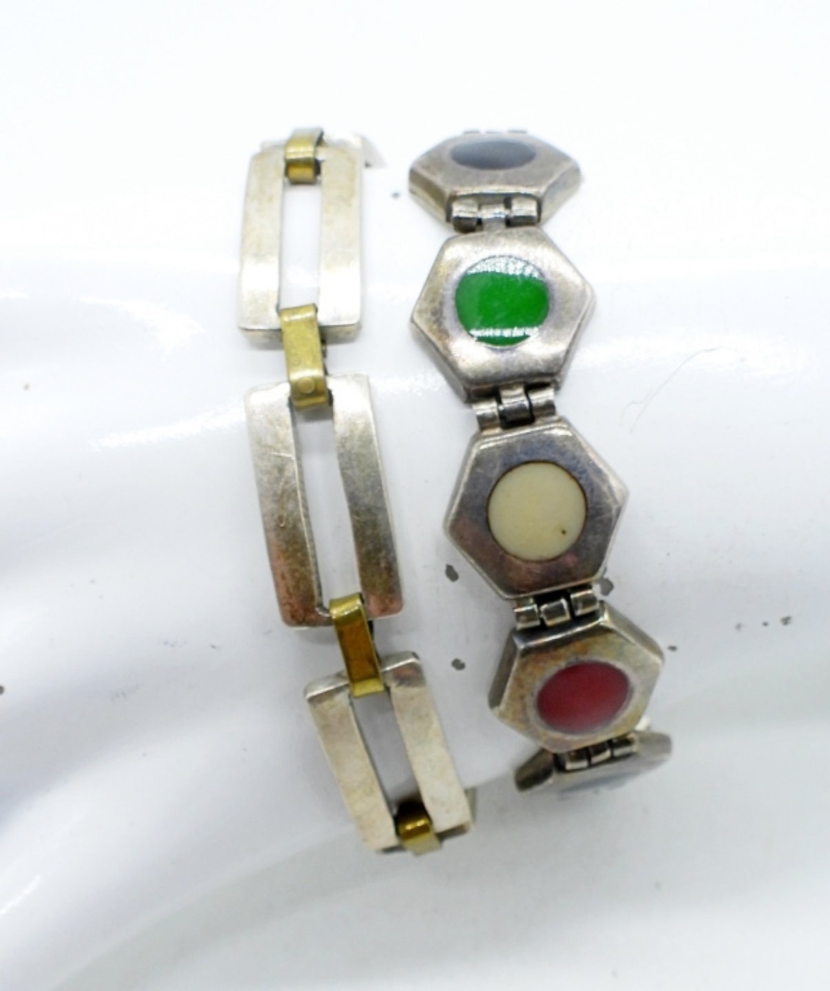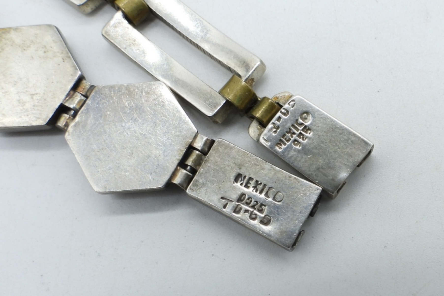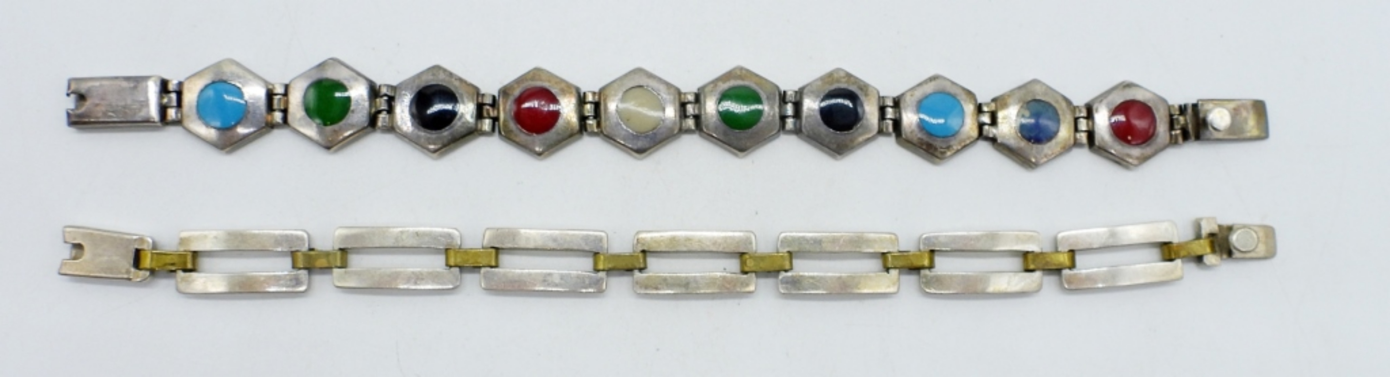 TWO VINTAGE STERLING TAXCO BRACELETS. 7″. PLEASE SEE PHOTOS AS THE MARKINGS ARE HARD TO READ. (37 DWT)