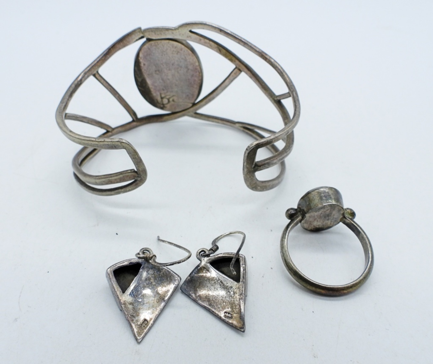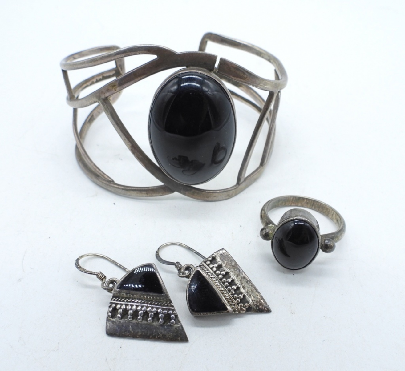 BRACELET IS BROKEN (SEE PHOTOS!) RING SIZE 7. PIERCED EARRINGS. (27 DWT)
