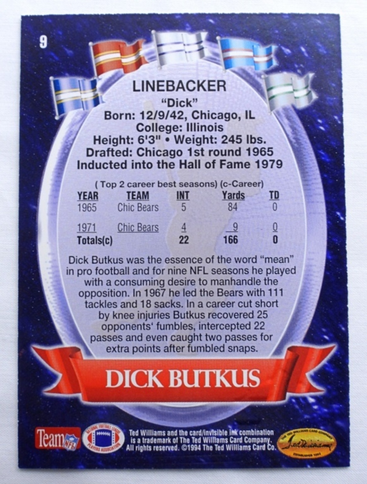 COMES WITH CONVENTION TICKET w/BUTKUS AUTOGRAPH APPEARING / MERCHANDISE TICKET COA