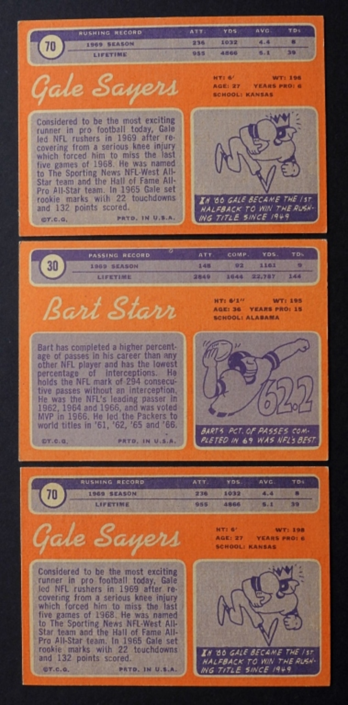 (2) #70 GALE SAYERS (1) #30 BART STARR – NICE EX/EM