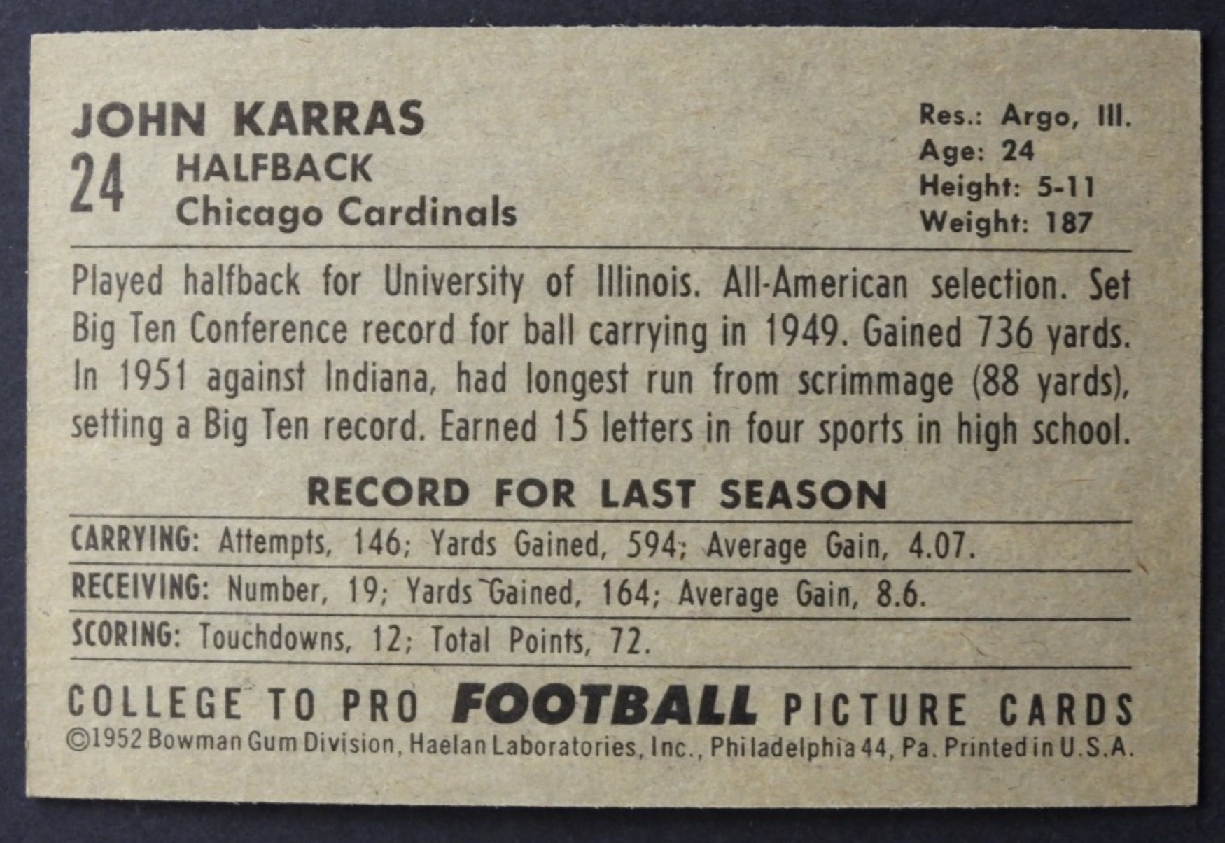 1952 BOWMAN LG #24 JOHN KARRAS ROOKIE