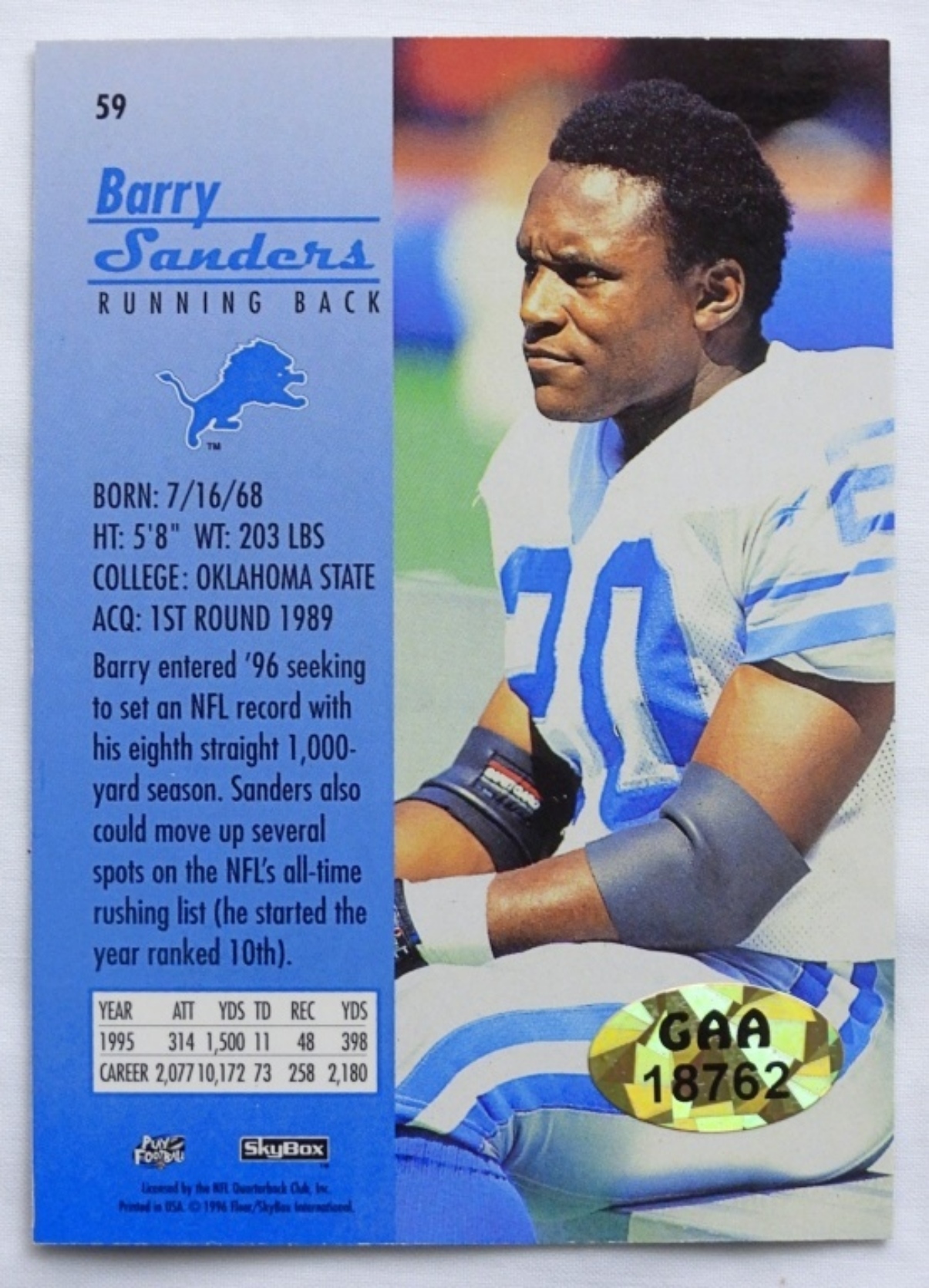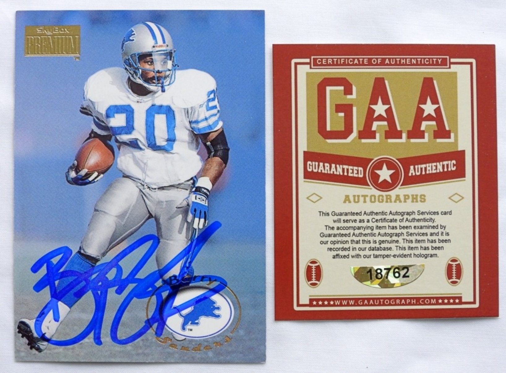 BARRY SANDERS SIGNED FOOTBALL CARD