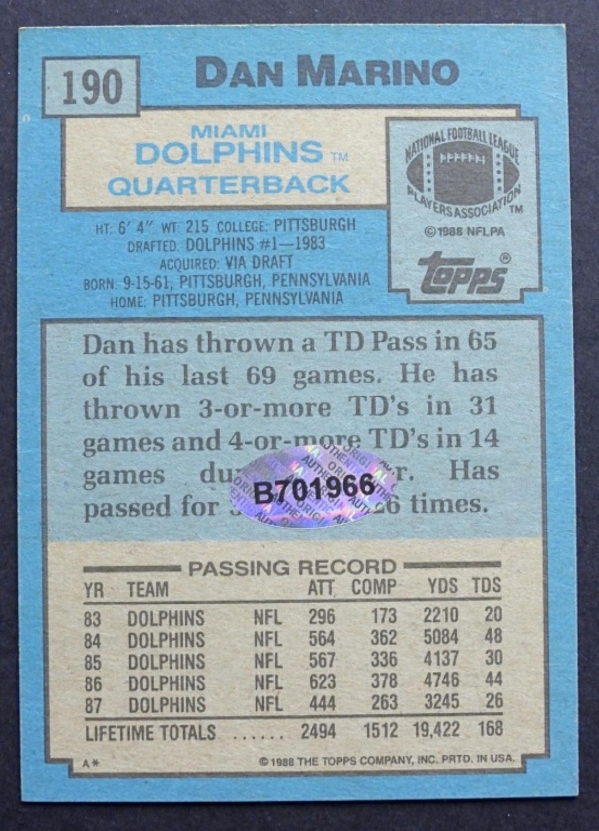 COA by AUTHENTIC INK / UNVERIFIED